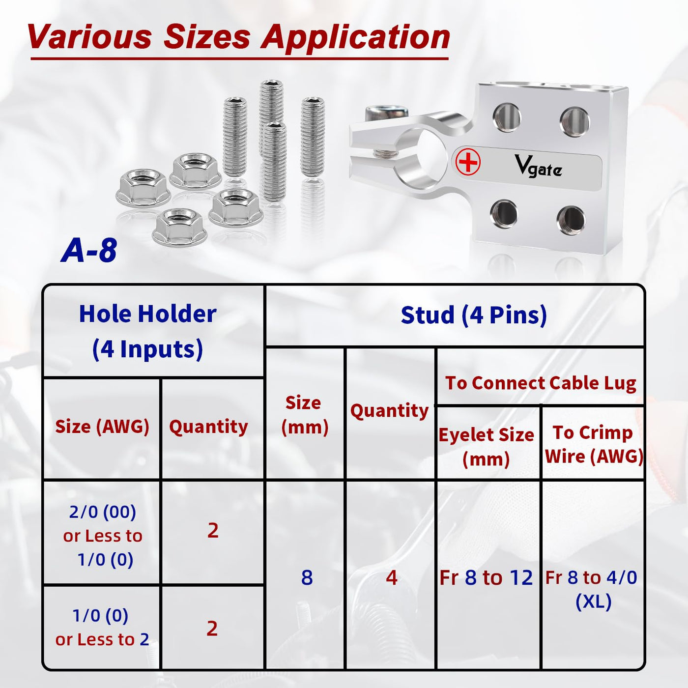 Vgate 8-Way Lead Acid Battery Terminal Connector, Agm Post Terminal Ends, 8Awg Up To 4/0(Xl) Awg Gauge, Positive & Negative For