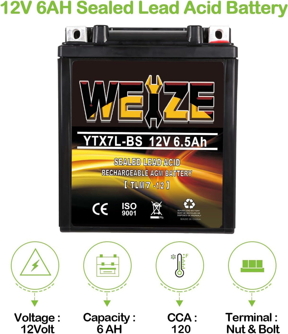 Weize Ytx7L Bs 100Cca Atv Battery High Performance - Maintenance Free - Sealed Agm Ytx7L-Bs Motorcycle Battery Compatible With H