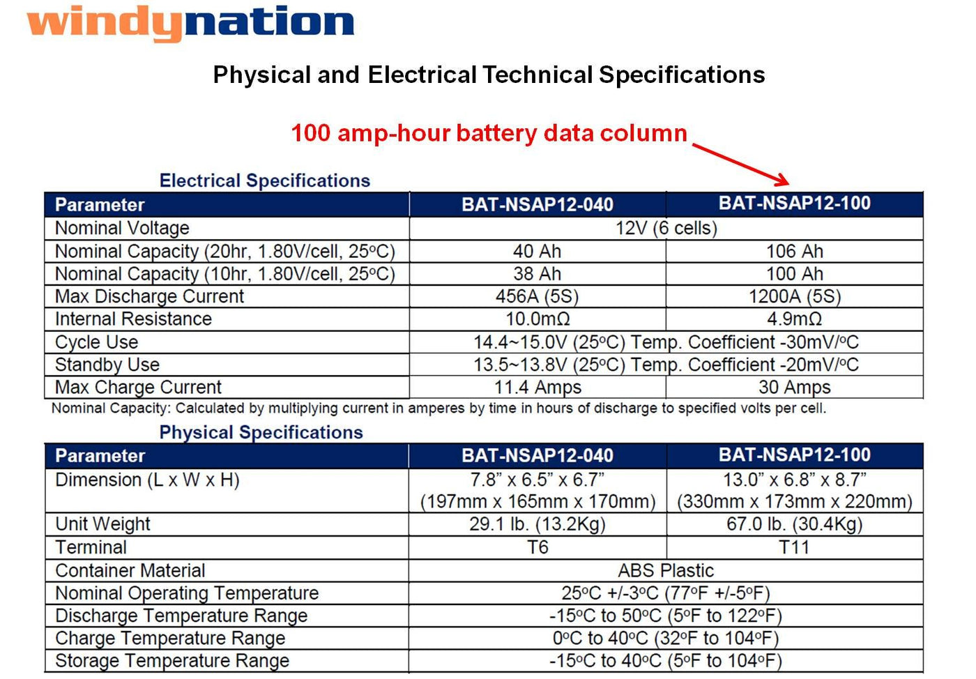 Windynation 100 Amp-Hour 100Ah 12V 12 Volt Agm Deep Cycle Sealed Lead Acid Battery - Solar Rv Ups Off-Grid (1 Pc 100 Amp-Hour)