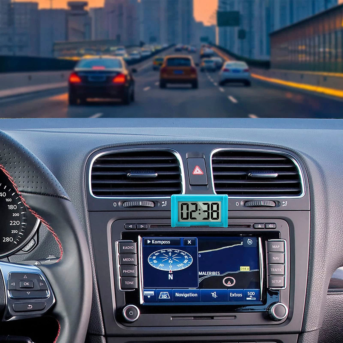 Youngfly 6Pcs Small Digital Clock, Vehicle Adhesive Clock With Jumbo Lcd Time & Day Display, Mini Car Dashboard Clock Battery Op