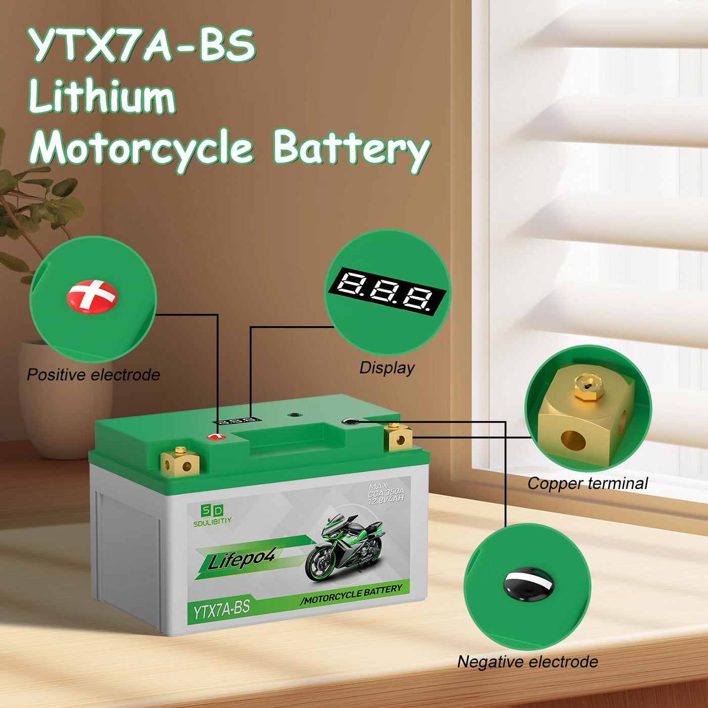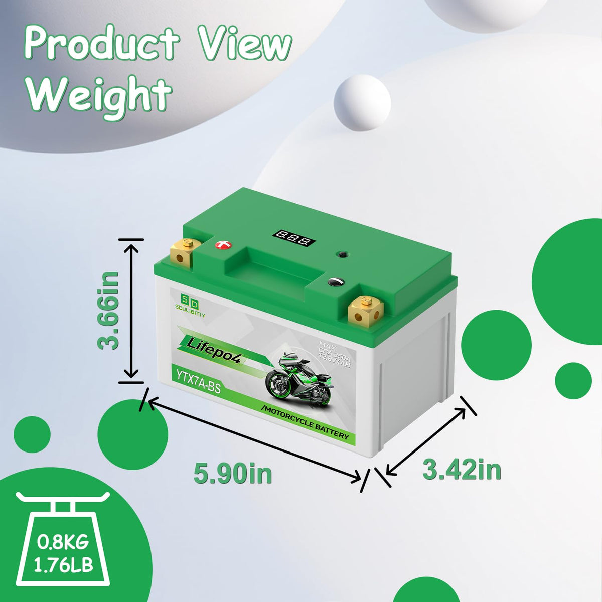 YTX7A-BS Lithium Motorcycle Battery 12.8V 4Ah 350CCA High Performance Lithium Powersports Battery with Smart BMS, Compatible Mot