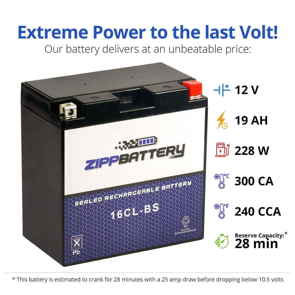 Zippbattery Yb16Cl-Bs Maintenance-Free 12V 19Ah Battery Replacement For Atv, Motorcycle, Jet Skis, Scooter, Utv, And More - Nut
