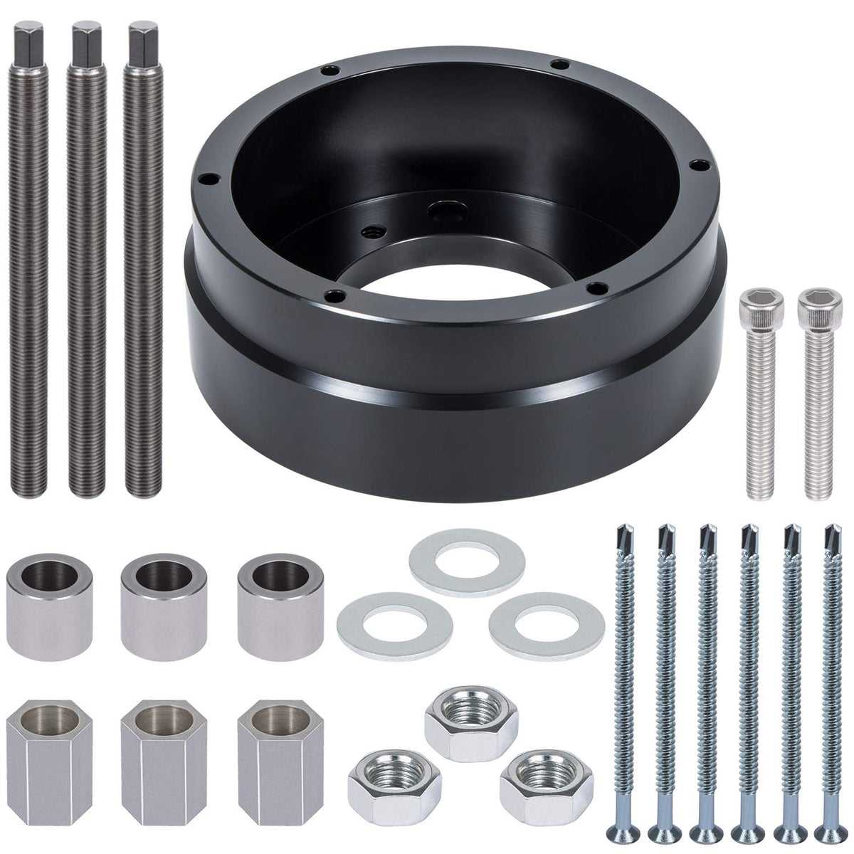 Q: What materials are used in the construction of this crankshaft seal remover?A: The tool is made from advanced CNC machined heavy-duty steel with a black anodized finish, ensuring durability, strength, and resistance to corrosion.