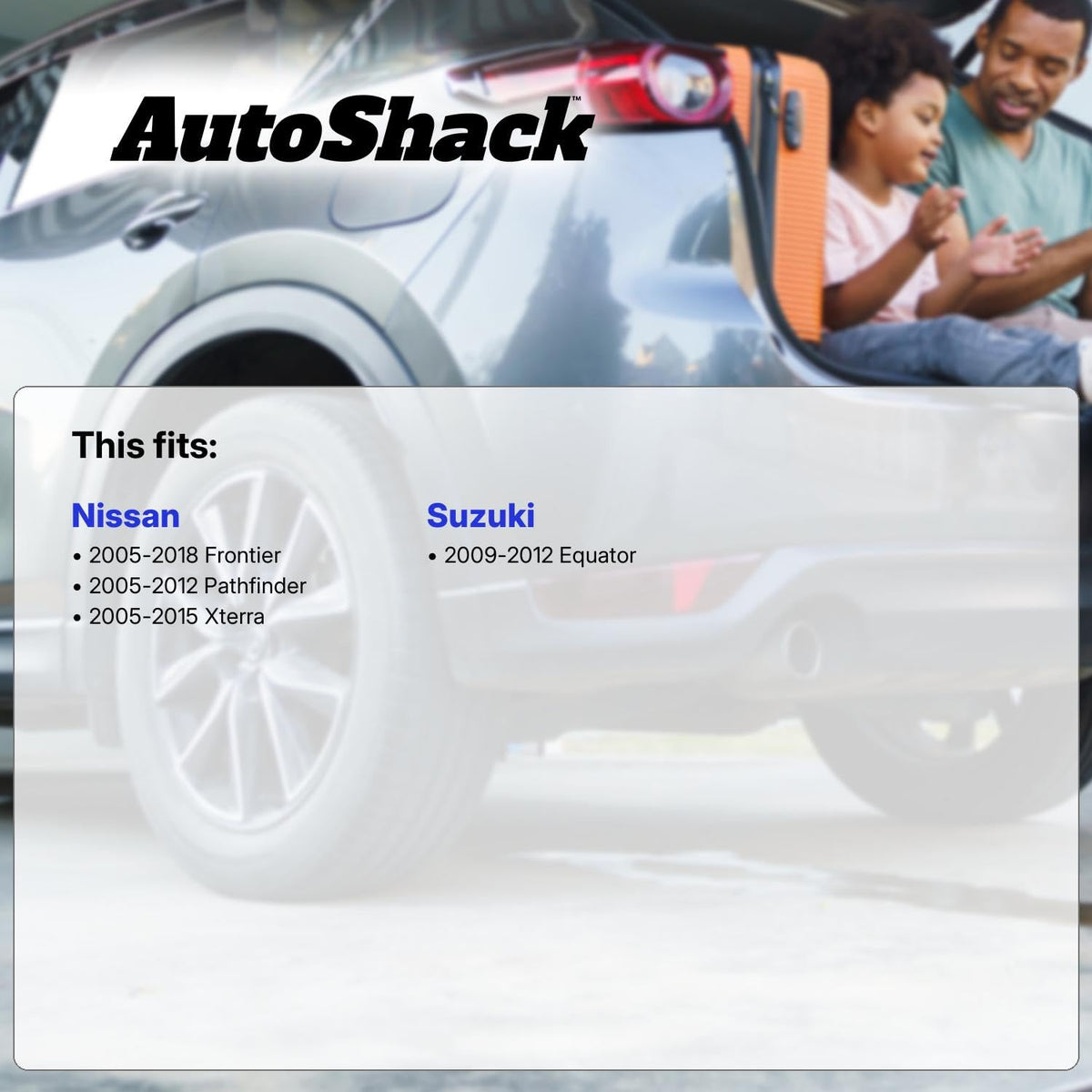 Q: What vehicles are compatible with the AutoShack Front CV Axle Drive Shaft and Wheel Bearing Hub Assembly?A: The AutoShack Front CV Axle Drive Shaft and Wheel Bearing Hub Assembly is designed as a replacement for the Suzuki Equator (2005-2012) and Nissan Pathfinder (2005-2015), Xterra (2005-2018), and Frontier (2005-2012). Please use Amazon's vehicle fitment tool to ensure compatibility with your specific model.