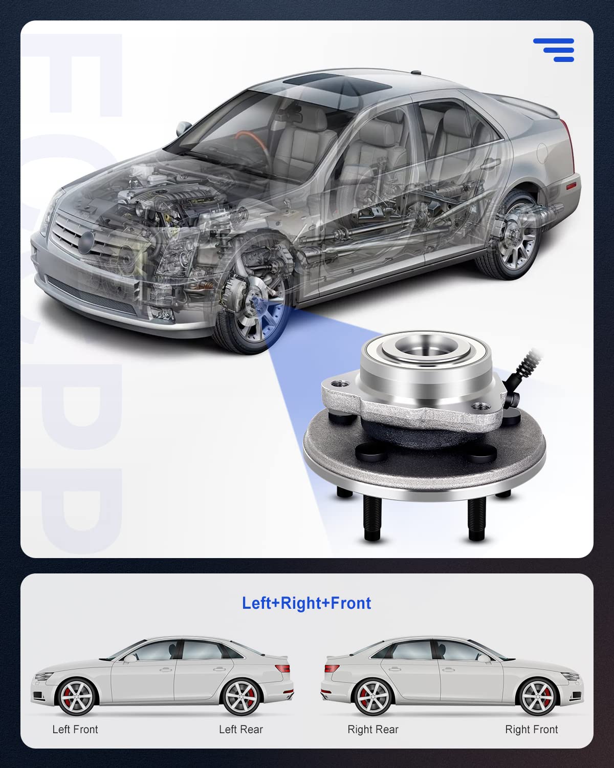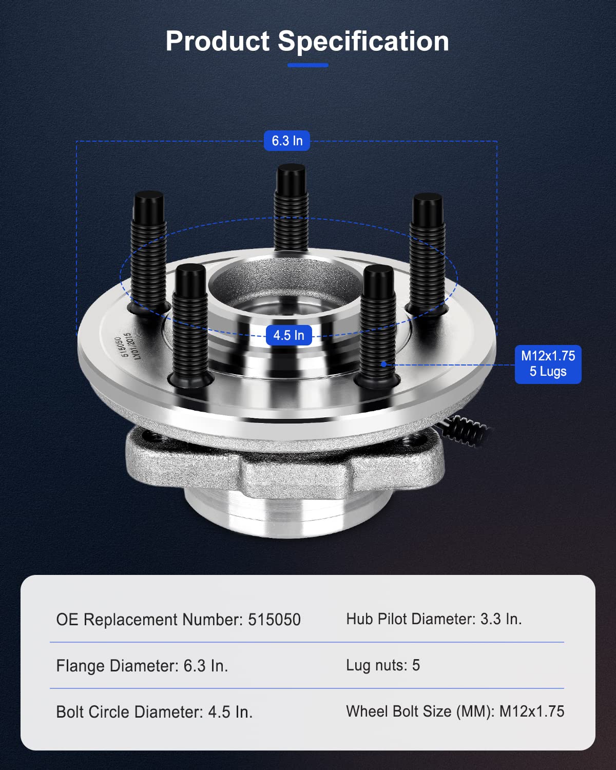 HUB ASSEMBLY DIRECT FIT OE QUALITY:OE 515050,Drop-in replacement for for Ford Explorer 2002-2005 4 Door Models;for Lincoln Aviator 2003-2005 All Models;for Mercury Mountaineer 2002-2005 All Models;- No modifications needed! Precision-engineered with OEM-grade materials to match factory specs, ensuring smooth ABS sensor integration and seamless performance | RIGOROUSLY TESTED FOR RELIABILITY: Heavy duty hub assembly Survived 10,000+ cycles of impact, wear, and fatigue testings - built to handle potholes, rough roads, and daily commutes. Trusted by mechanics nationwide as the go-to hub assembly for long-lasting durability. | FACTORY-LEVEL EXPERTISE: Hub assembly installation kit Crafted by the same engineers who supply OE parts for Ford, for GM, and for Chrysler. This isn