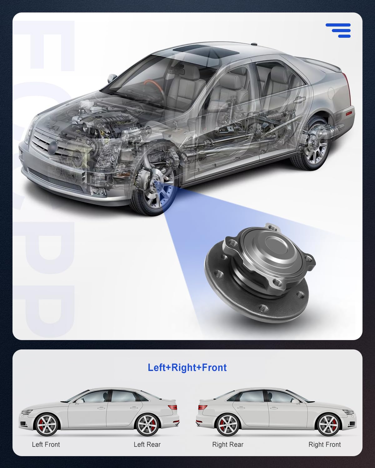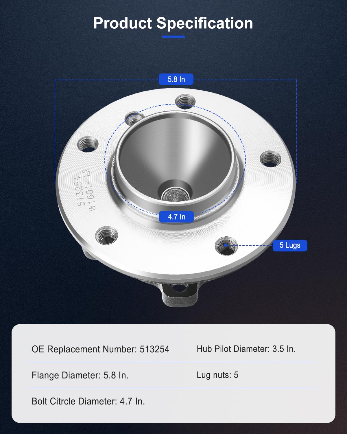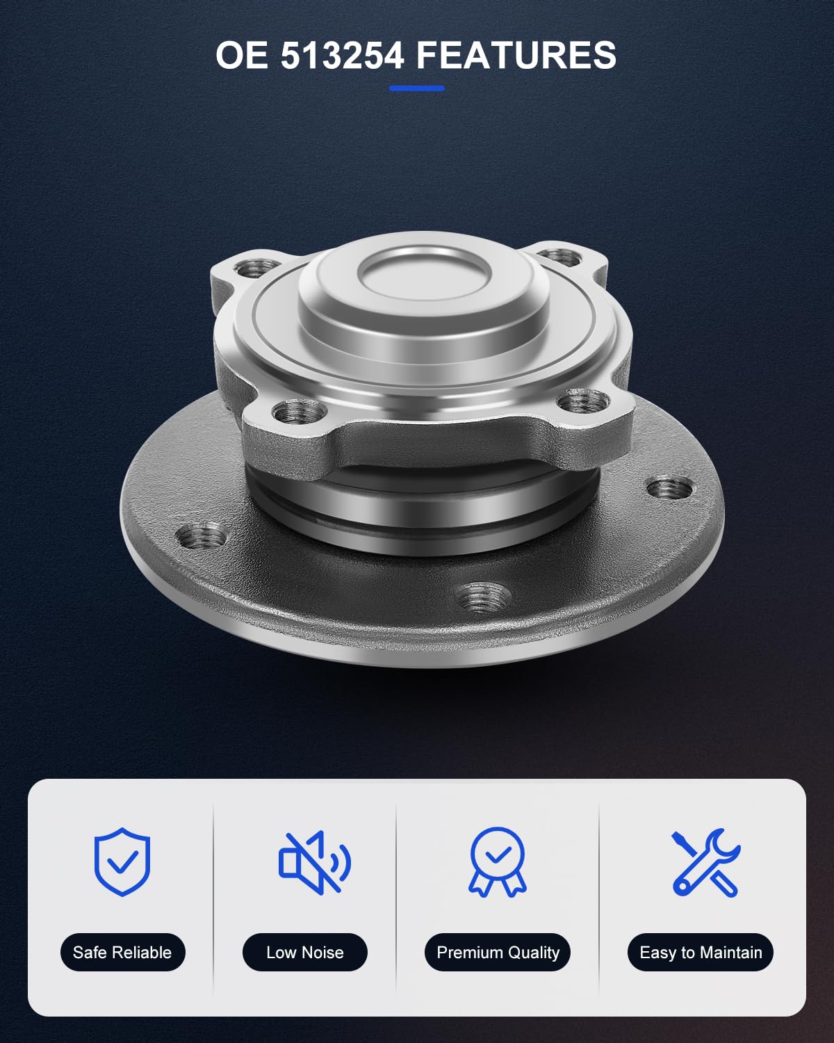 Compatibility2006 325i 2006 325xi 2007-2009 328i 2007-2008 328xi 2006 330Ci 2006 330i 2006 330xi 2007-2008 335iWheel hubs reference: front Axle Flange Diameter: 5.94 In. Bolt Circle Diameter: 4.50 In. Wheel Pilot Diameter: 2.77 In. Brake Pilot Diameter: 2.82 In. Flange Offset: 2.05 In. Hub Pilot Diameter: 3.07 In. Bolt Size: 1/220 Bolt Quantity: 5 ABS Sensor: Yes Packaged Included 1 pcs of front wheel hub bearing assembly Note Please review the information above carefully to make sure this part fits your vehicle