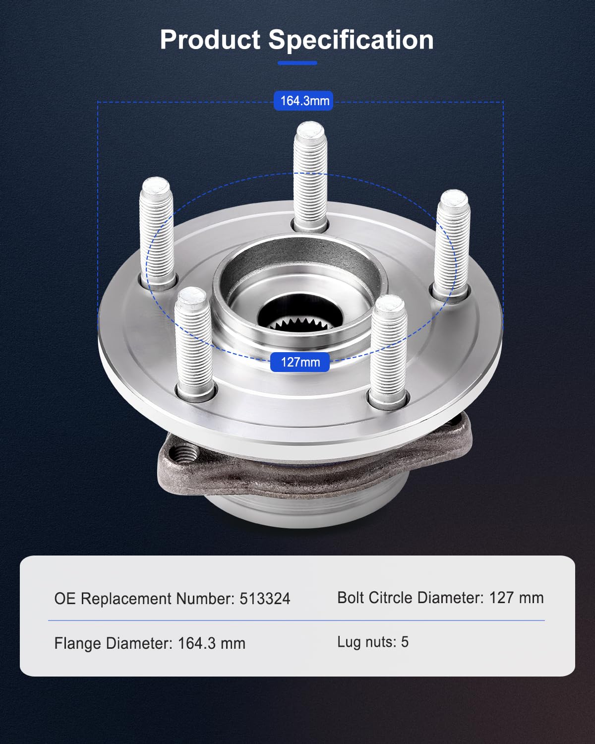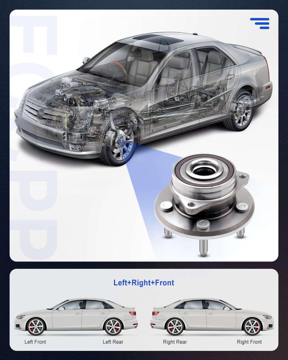 Compatibility:2011-2016 For Durango Fits 3.6L, 5.7L; AWD; RWD; front Left And Right2014-2016 for Jeep Grand For Cherokee Fits 3.0L; 4WD;RWD; front Left And Right2011-2016 for Jeep Grand For Cherokee Fits 3.6L, 5.7L; 4WD; RWD; front Left And Right2012-2016 for Jeep Grand For Cherokee Fits 6.4L; 4WD; RWD; front Left And RightPackage Including:2 PCS offront Wheel Bearing Hub AssemblyNote:Please check the description or use the year/make/model drop down bar and interchangeable part numbers to confirm the compatibility before purchase.