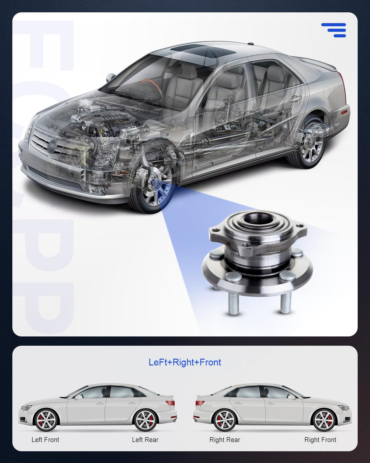 ECCPP, one of the largest automotive aftermarket parts provider online in America, serves both the professional installer and do-it-yourself customers.Each wheel hub bearing assembly is designed For specific application. We manufacture and distribute a full line of high-technology critical components.Features Wheel Bearing Hub worked great to fix a noisy front wheel bearing and we will offer technical support and Installed guidance once you buy it.Fitments for Chrysler 300 2005-2009 for Dodge Charger 2007-2009 for Dodge Magnum 2005-2008Package Including1 wheel bearing hub pack in a box