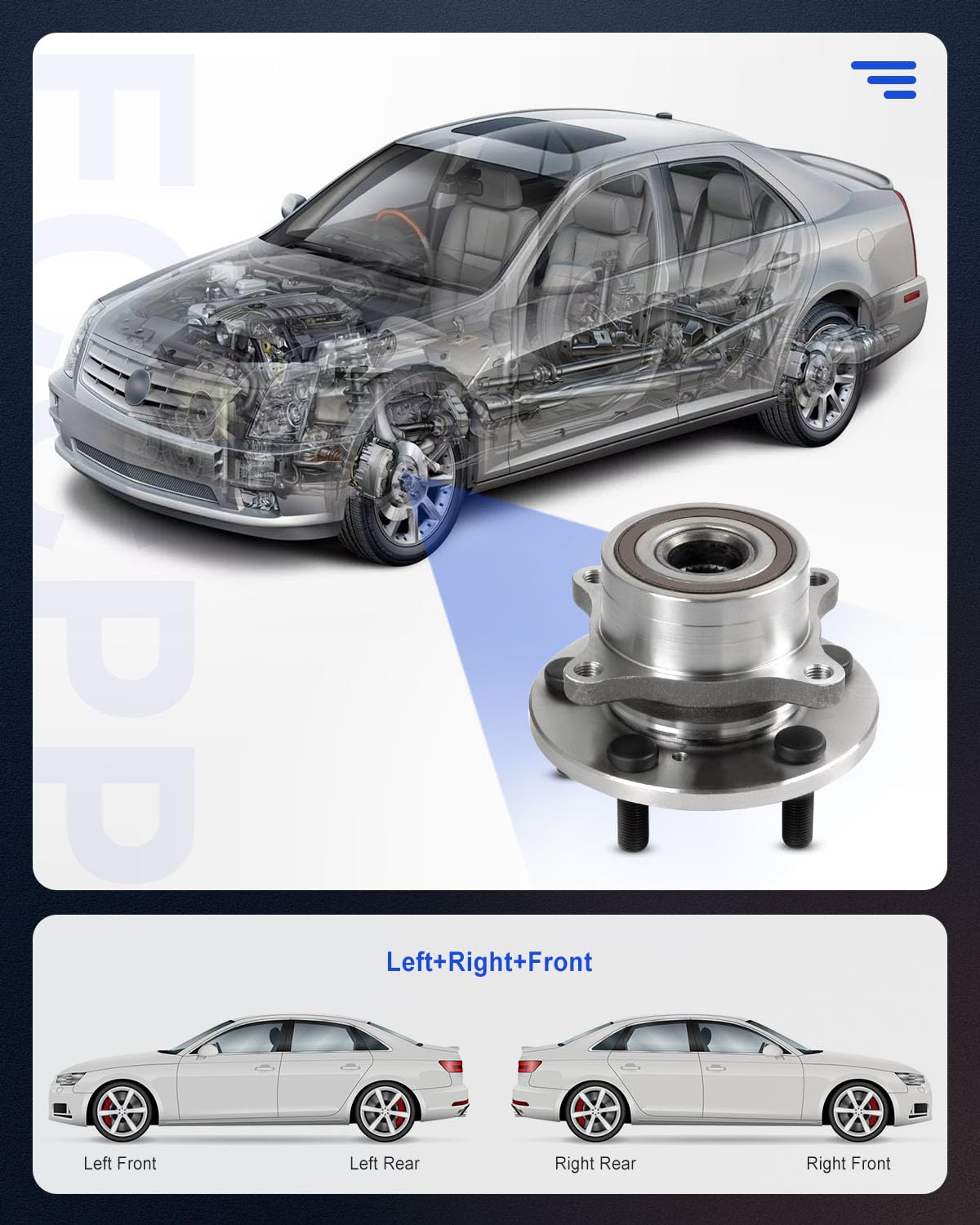 ECCPP, one of the largest automotive aftermarket parts provider online in America, serves both the professional installer and do-it-yourself customers.Each wheel hub bearing assembly is designed For specific application. We manufacture and distribute a full line of high-technology critical components.Features Wheel Bearing Hub worked great to fix a noisy front wheel bearing and we will offer technical support and Installed guidance once you buy it.Fitments for Acura MDX BASE MODEL V6 3.7L 3664CC J37A1 2007 for Acura MDX BASE MODEL V6 3.7L 3664CC J37A1 2007-2008 for Acura MDX BASE MODEL V6 3.7L 3664CC J37A1 2008-2009 for Acura MDX BASE MODEL V6 3.7L 3664CC J37A1 2009PILOT EX V6 3.5L 3471CC J35Z4 2009PILOT EX-L V6 3.5L 3471CC J35Z4 2009PILOT LX V6 3.5L 3471CC J35Z4 2009PILOT TOURING V6 3.5L 3471CC J35Z4 2009Package Including1 wheel bearing hub pack in a box