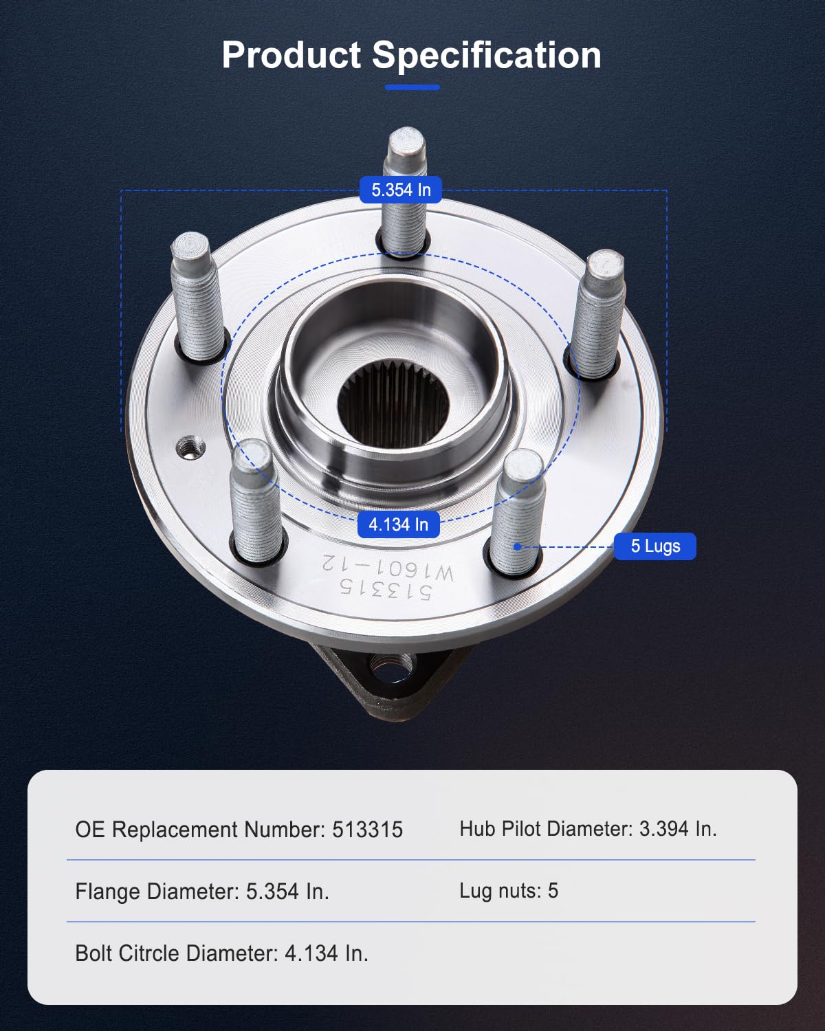 ECCPP Replacement for Wheel Bearing Hub 513315 Hub Bearing Assembly Hub Assemblies Front Axle 5 Lugs for Chevrolet Cruze ECO, Ch