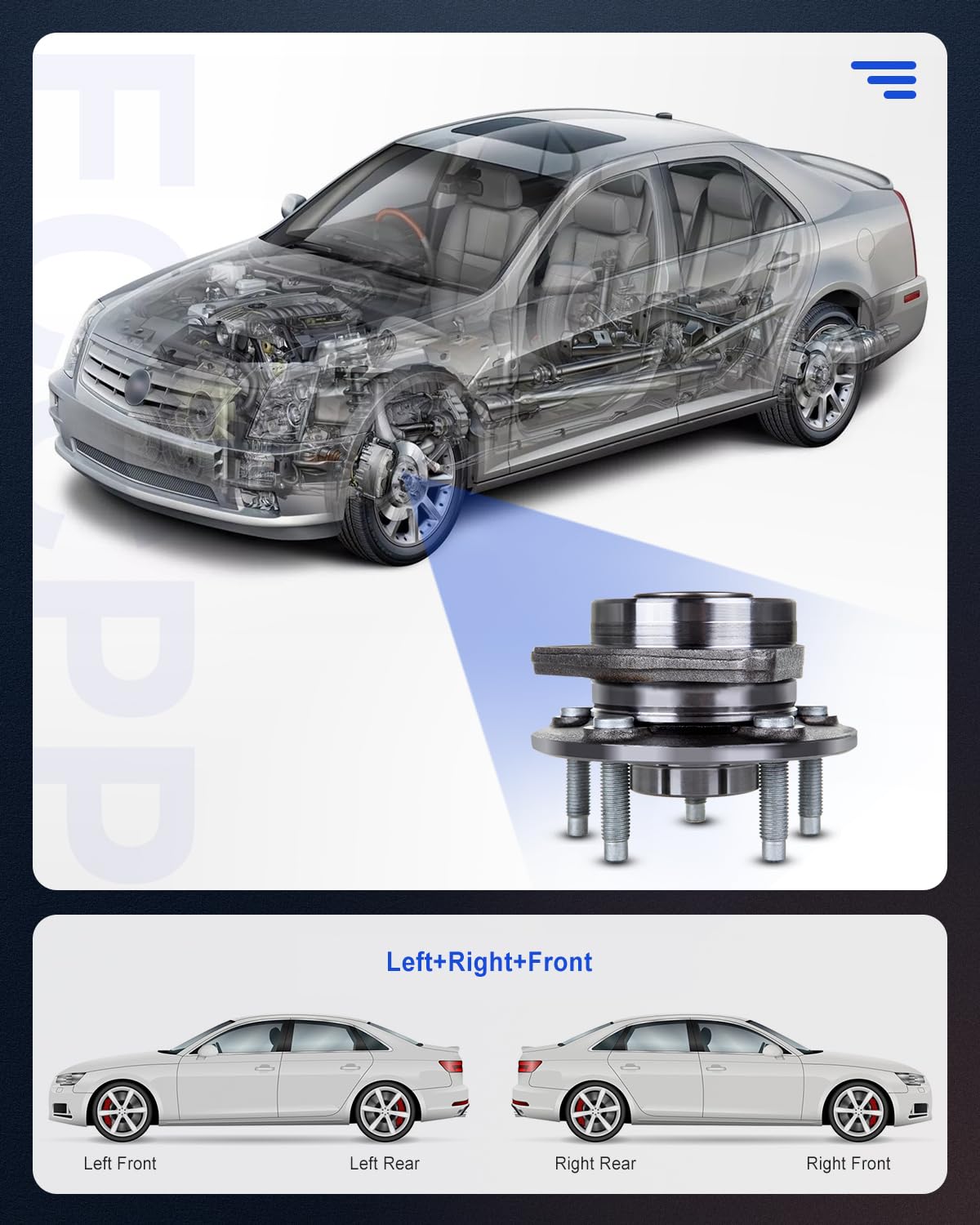 ECCPP, one of the largest automotive aftermarket parts provider online in America, serves both the professional installer and do-it-yourself customers.Each wheel hub bearing assembly is designed For specific application. We manufacture and distribute a full line of high-technology critical components.Features Wheel Bearing Hub worked great to fix a noisy front wheel bearing and we will offer technical support and Installed guidance once you buy it.Fitments for Chevrolet CRUZE ECO L4 1.4L 1364CC/83CID VIN 9 LUJ TURBO 2011 for Chevrolet CRUZE ECO L4 1.4L 1364CC/83CID VIN C LUJ TURBO 2012 for Chevrolet CRUZE LS L4 1.8L 1796CC/110CID VIN H LUW 2011-2012 for Chevrolet CRUZE LT L4 1.4L 1364CC/83CID VIN 9 LUJ TURBO 2011 for Chevrolet CRUZE LT L4 1.4L 1364CC/83CID VIN C LUJ TURBO 2012 for Chevrolet CRUZE LTZ L4 1.4L 1364CC/83CID VIN 9 LUJ TURBO 2011 for Chevrolet CRUZE LTZ L4 1.4L 1364CC/83CID VIN C LUJ TURBO 2012Package Including1 wheel bearing hub pack in a box