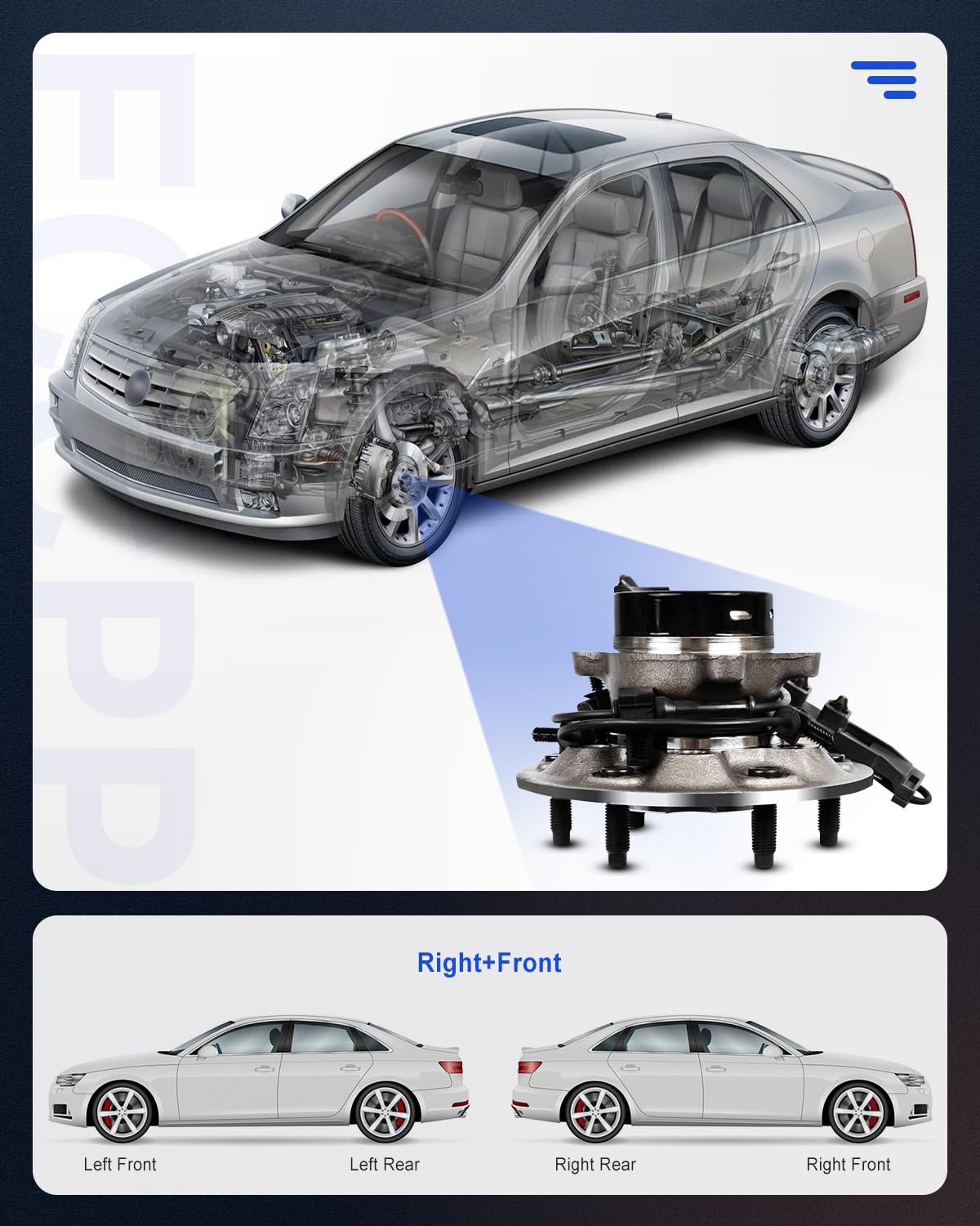 ECCPP Replacement for Wheel Bearing Hub 515109 Hub Bearing Assembly Hub Assemblies Front Axle, Right 6 Lugs W/ABS Sensor for GMC