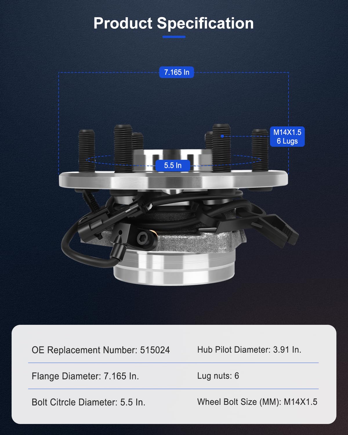 ECCPP Wheel Hub and Bearing Assembly Front 515024 fit 1995-2000 Chevy Cadillac GMC 4WD Replacement for 6 lugs wheel hub with ABS