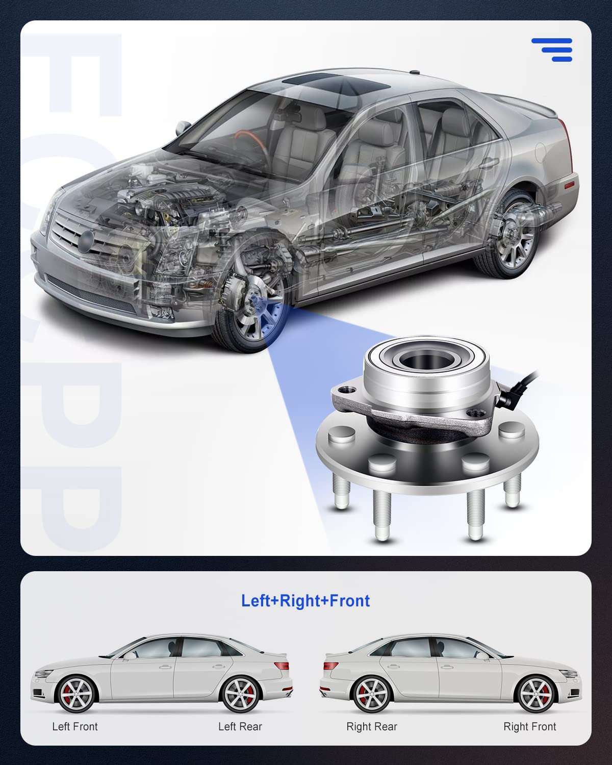 Q: What vehicles are compatible with the ECCPP Wheel Hub and Bearing Assembly?A: The ECCPP Wheel Hub and Bearing Assembly fits various models, including the 2002-2006 Cadillac Escalade, 2002-2006 Chevrolet Avalanche 1500, 1999-2008 Chevrolet Express 1500, and 1999-2006 GMC Sierra 1500, among others. It's crucial to check the specific year, make, and model for proper compatibility.