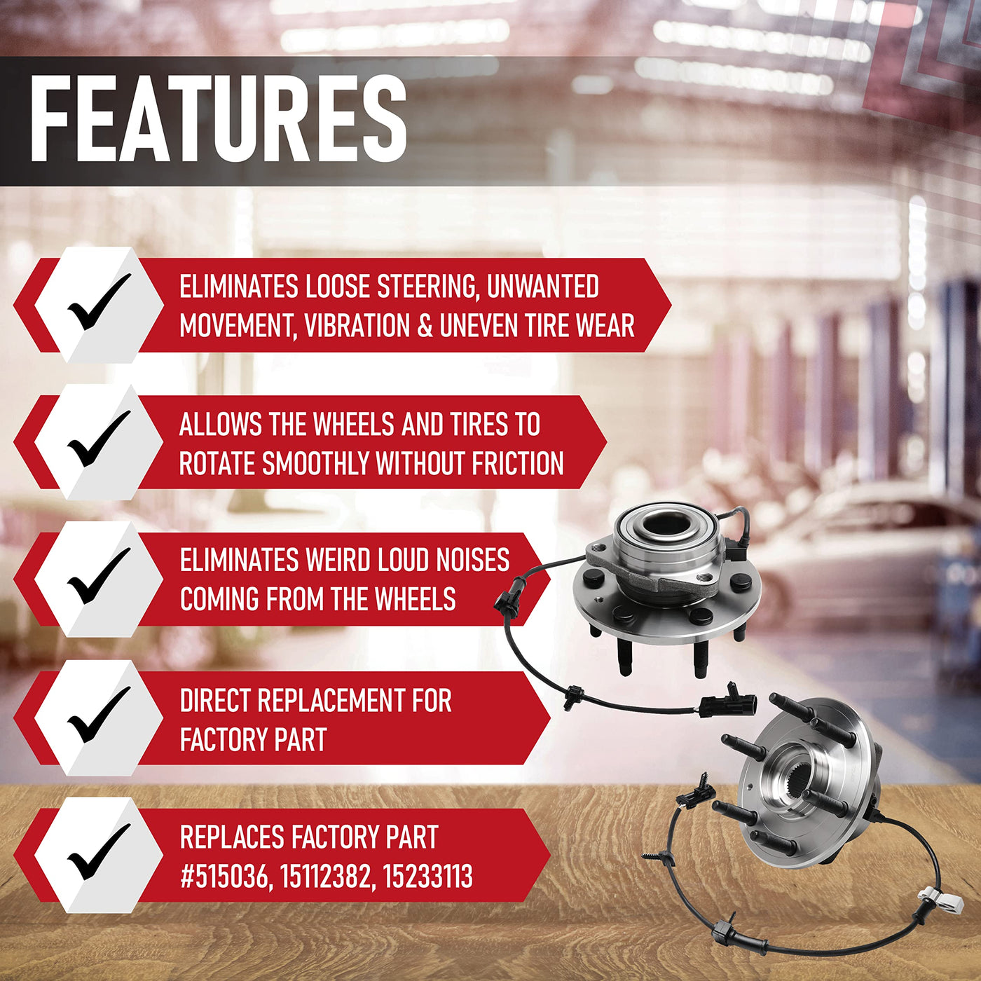 Front Wheel Hub Bearing Assembly Set Of 2-4Wd Compatible With Chevy, Cadillac, Gmc - Escalade, Avalanche, Silverado 1500, Suburb