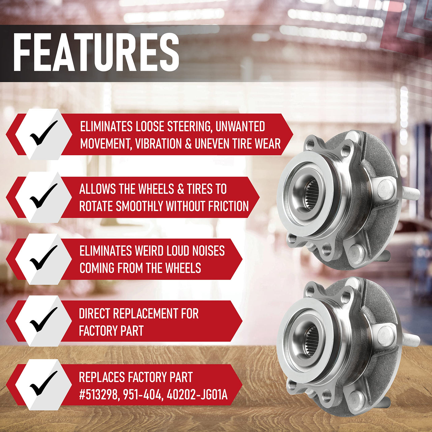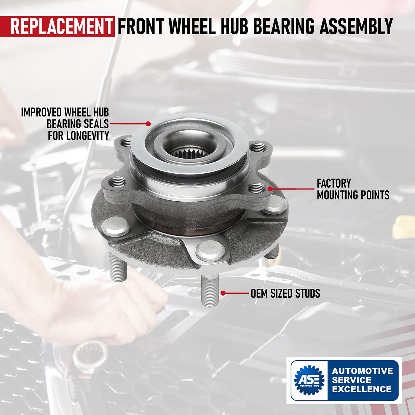 Replacement Front Wheel Hub Bearing Set Of 2 - Compatible With Nissan - Rogue 2010-2013, Sentra 2.5L 2007-2012, 2014-2015 Rogue