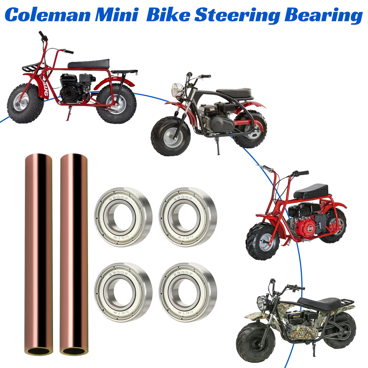 YOXUFA Steering Bearing Column Liner Tube Kit for Coleman CT200U BT200X CT200U-EX CT100U CC100X RT200 RT100 Predator 212cc 196cc 200cc 98cc 100cc 5.5hp 2.5 3.0hp Engine Mini Bike Parts 6900z 4 Packs Product details Features: YOXUFA Steering Bearings & Column Liner Tube Kit for Coleman 98cc 100cc 196cc 200cc mini bike Compatibility: Coleman CT200U BT200X CT200U-ex /RT200 Mini Bike, Coleman CT100U/CC100X/RT100 Mini Bike, Made of chrome steel, high speed rolling by machine polished inner & outer race, wear-resistant and durable. Rubber Sealed to keep dirt, mud, water from it and for All condition off-road riding. Steering bearings fall out during off-road riding, steering column liner tube kit support the inner race of the bearing to allow a possible jump. Bearing Size: 10mmx22mmx6mm ( ID:10mm, OD: 22mm, Width: 6mm), it's also called 6900Z bearing. Specification: YOXUFA Product Name: 6900Z Steering Bearing Kit Material: Steel Color: Silver Product Llist: 2 * Steering Bearing, 2 * Axle Sleeve,