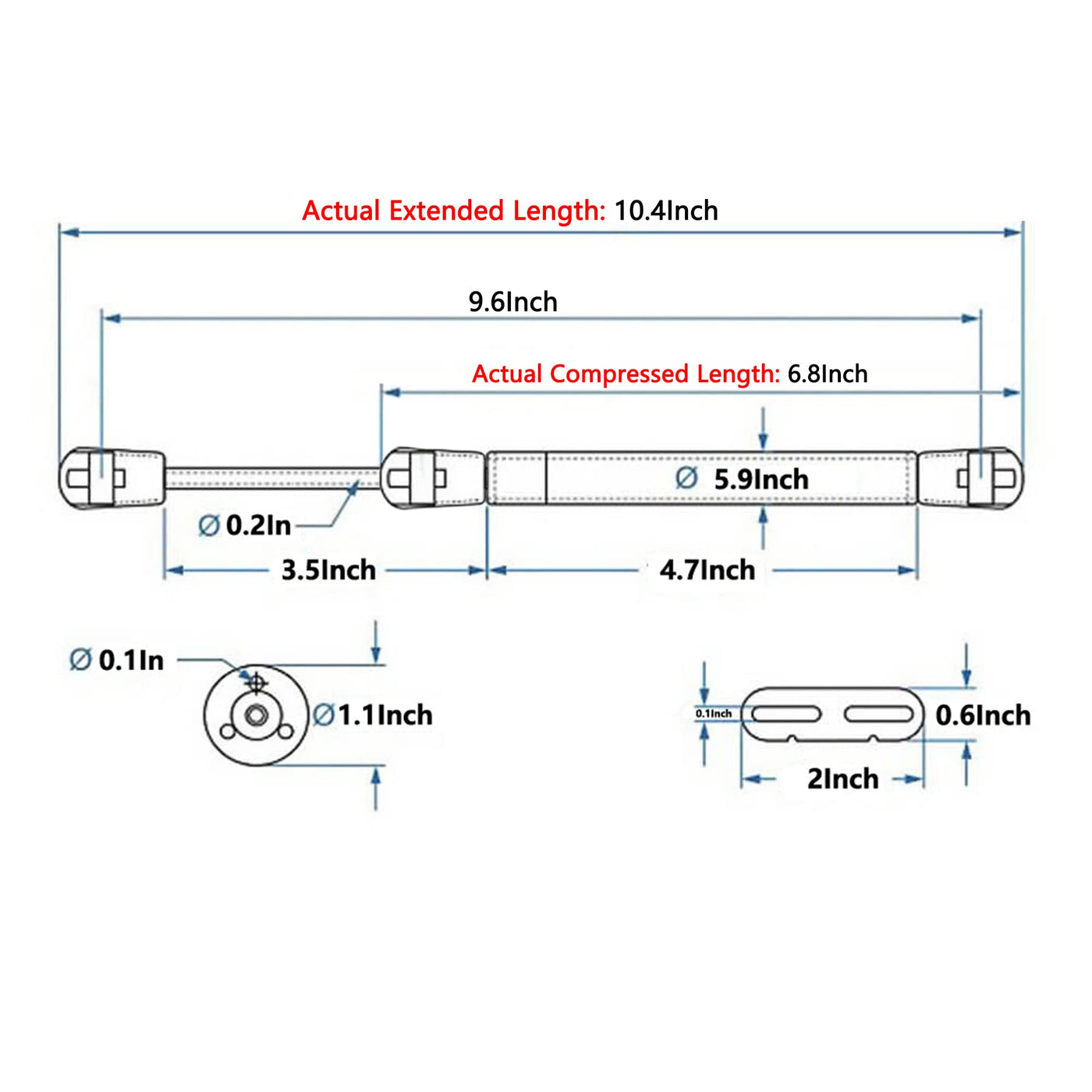 Product Description: ? 1Pack Includes 2 Pieces Of Gas Strut. ? Support The Lid Or Lift Stay Open Without Burst Close. ? Length (From Hole Center To The Other): 9-11/16 '', Travel: 3-14/25 '', Distance Between Ball Mounts Compressed; 6-1/8''. ?Spring Force: 100N ?If You Are Unsure If Our Item Will Fit Your Application, You Are Very Welcomed To Ask Us In The Q& A Section Or By Contacting Us. We Are Happy To Help.