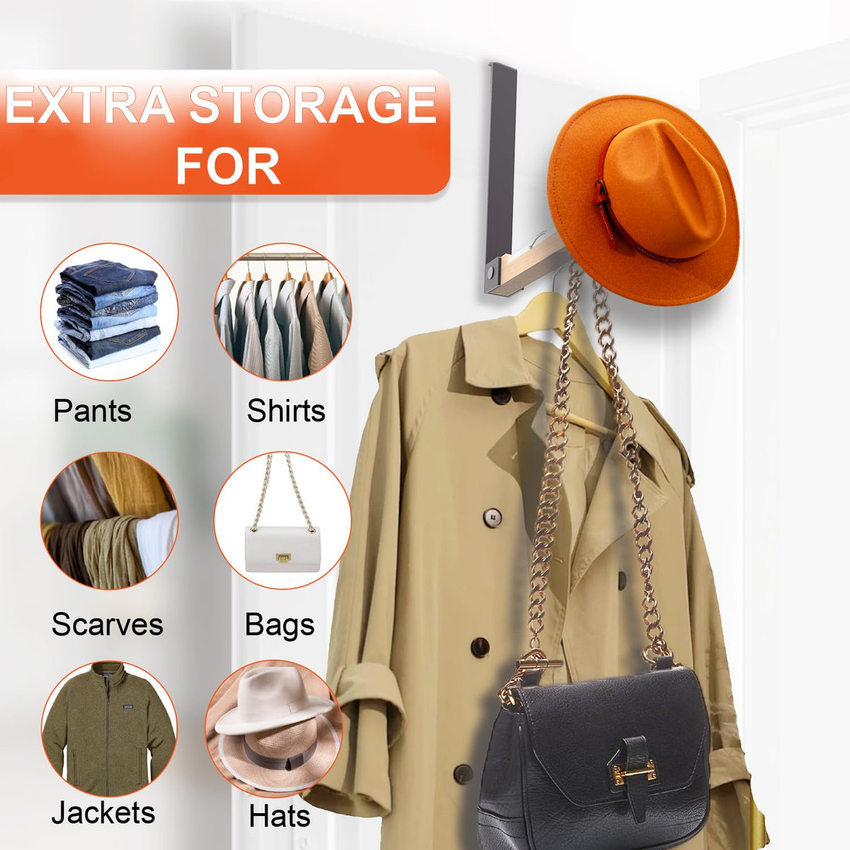 Q: How much weight can the Over Door Hook Hanger support?A: This foldable over door hanger can hold up to 22 pounds, making it ideal for hanging multiple items like coats, towels, and bags securely.