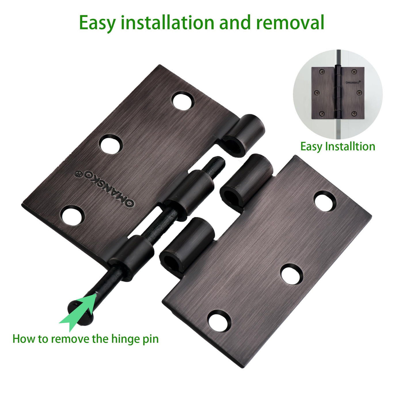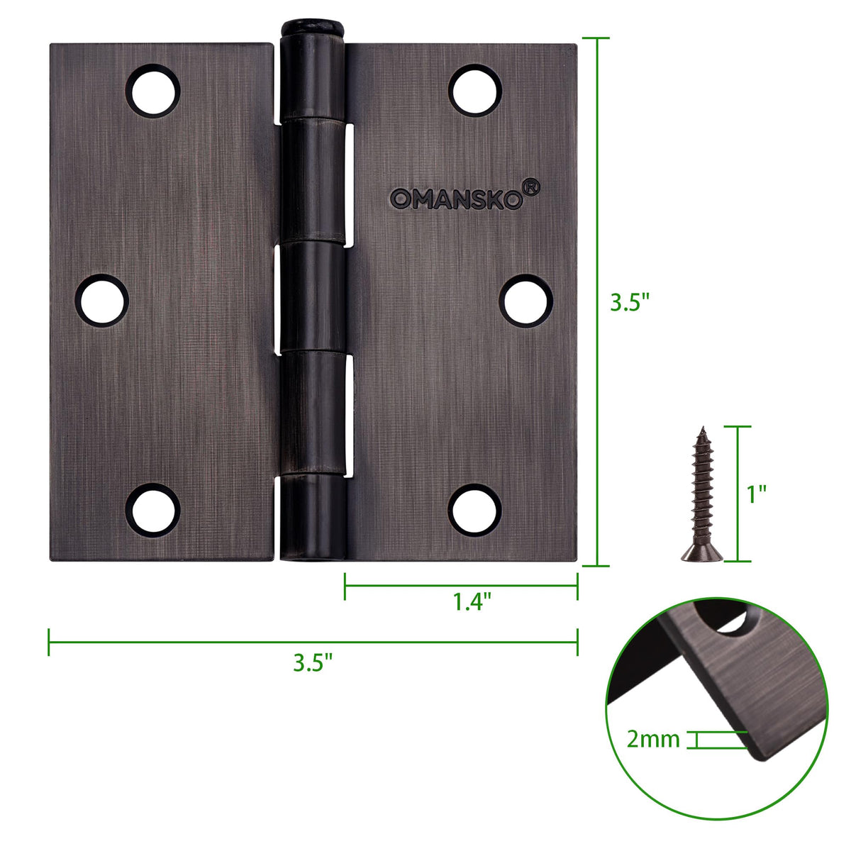 24 Pack Door Hinges, 3.5 X 3.5 Inch Oil Rubbed Bronze Hinges For Wood Square Corners Interior Door Hinges For Standard Flat/Bedroom, 3 1/2 Inch Door Hinges For Residential Doors