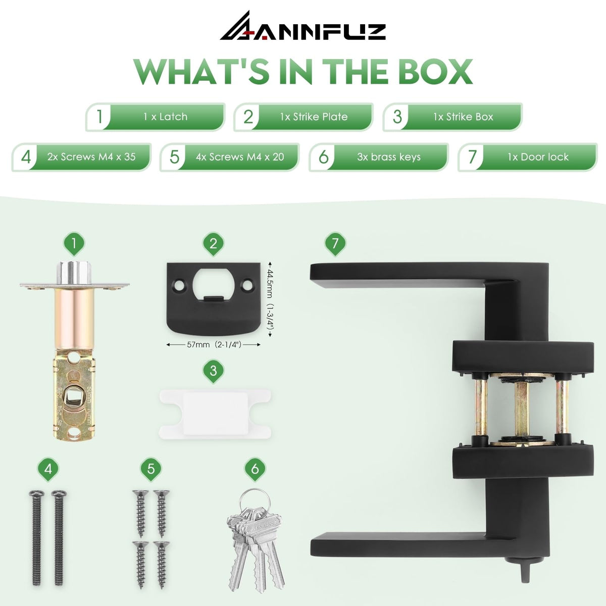 Q: How easy is it to install the ANNFUZ Entry Door Handle?A: Installation of the ANNFUZ Entry Door Handle is straightforward and can be completed in minutes using just a Phillips screwdriver. It is designed to fit most standard doors without requiring additional drilling or locksmith services.