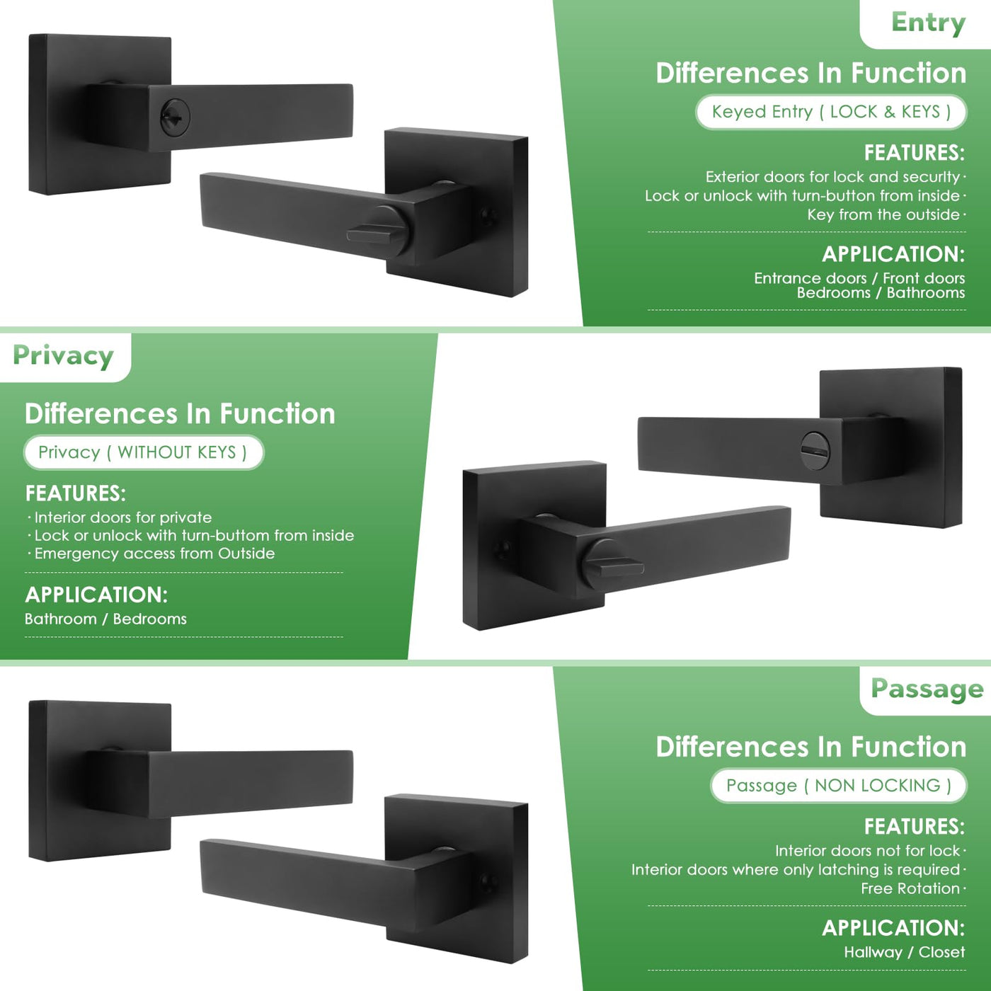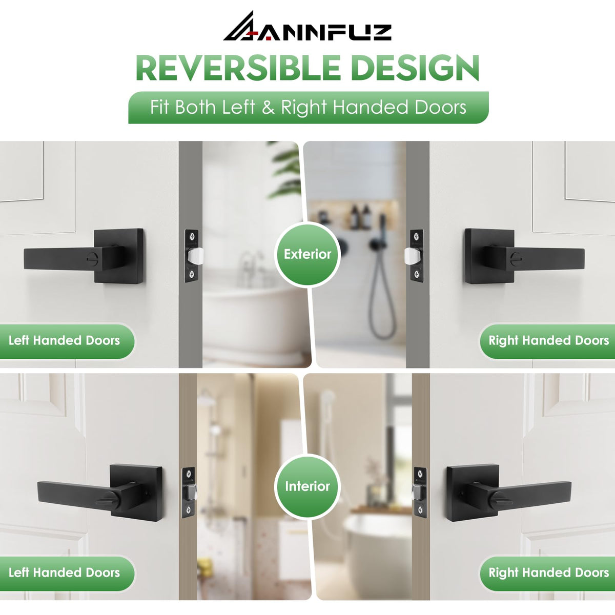 Annfuz Privacy Door Handle Without Key,Square Interior Door Lever With Emergency Access, Reversible Keyless Lever For Right & Left Side,For Bathrooms And Bedrooms,Matte Balck