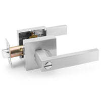 Annfuz Privacy Door Handle Without Key,Square Interior Door Lever With Emergency Access, Reversible Keyless Lever For Right & Left Side,For Bathrooms And Bedrooms,Satin Nickel