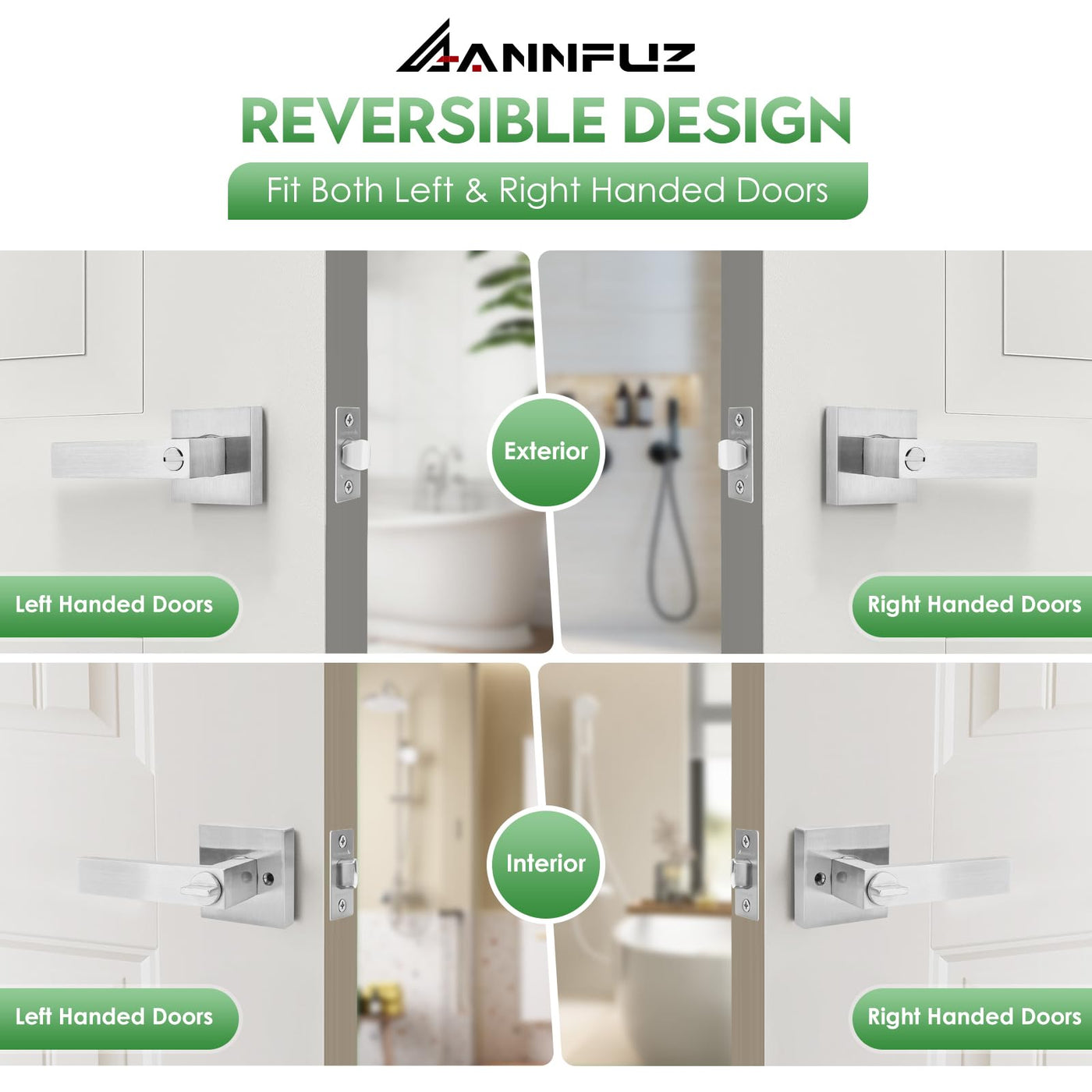 Q: Is the ANNFUZ Privacy Door Handle suitable for both right and left-handed doors?A: Yes, the ANNFUZ Privacy Door Handle is designed to be reversible, meaning it can be installed on both right-handed and left-handed doors, making it versatile for various interior setups.