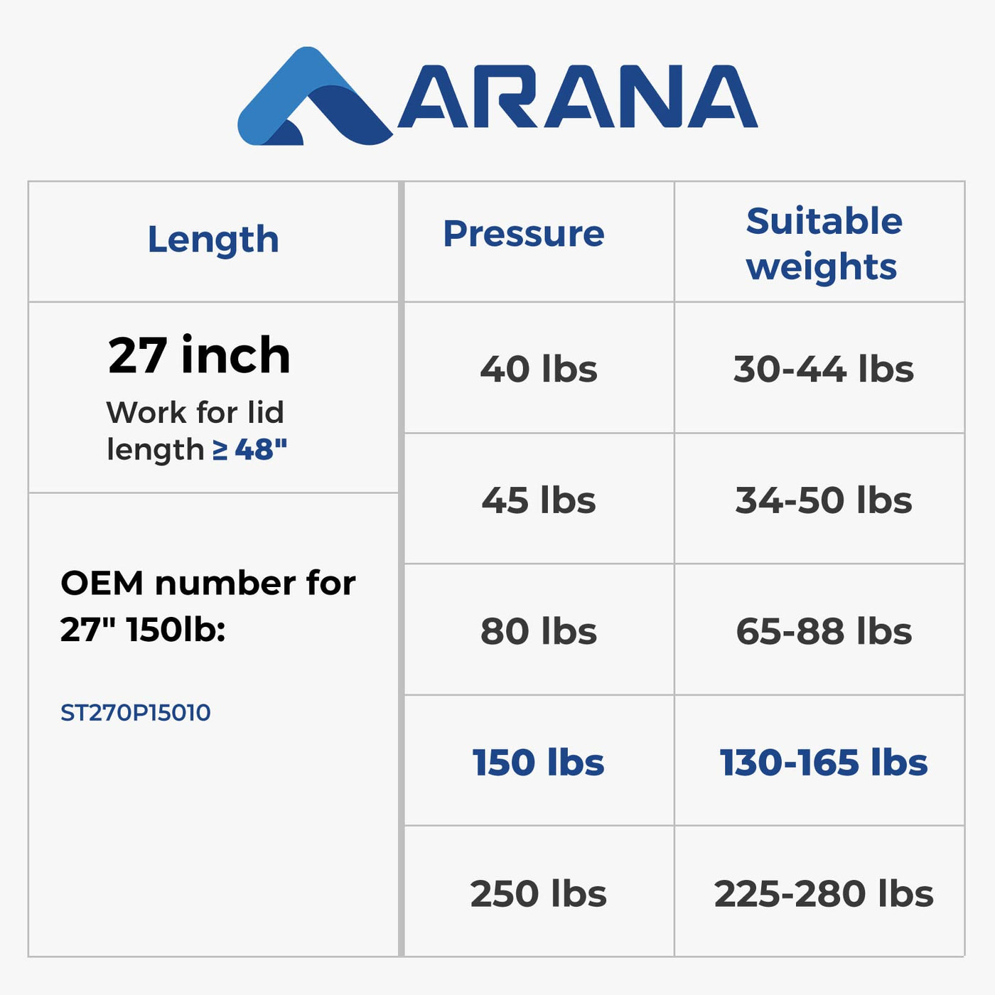 Arana St270P15010 27 Inch 150Lb Gas Spring Struts, St270P150-10 27 667N Shocks Lift Support Heavy Rv Bed Storage Trailer Door