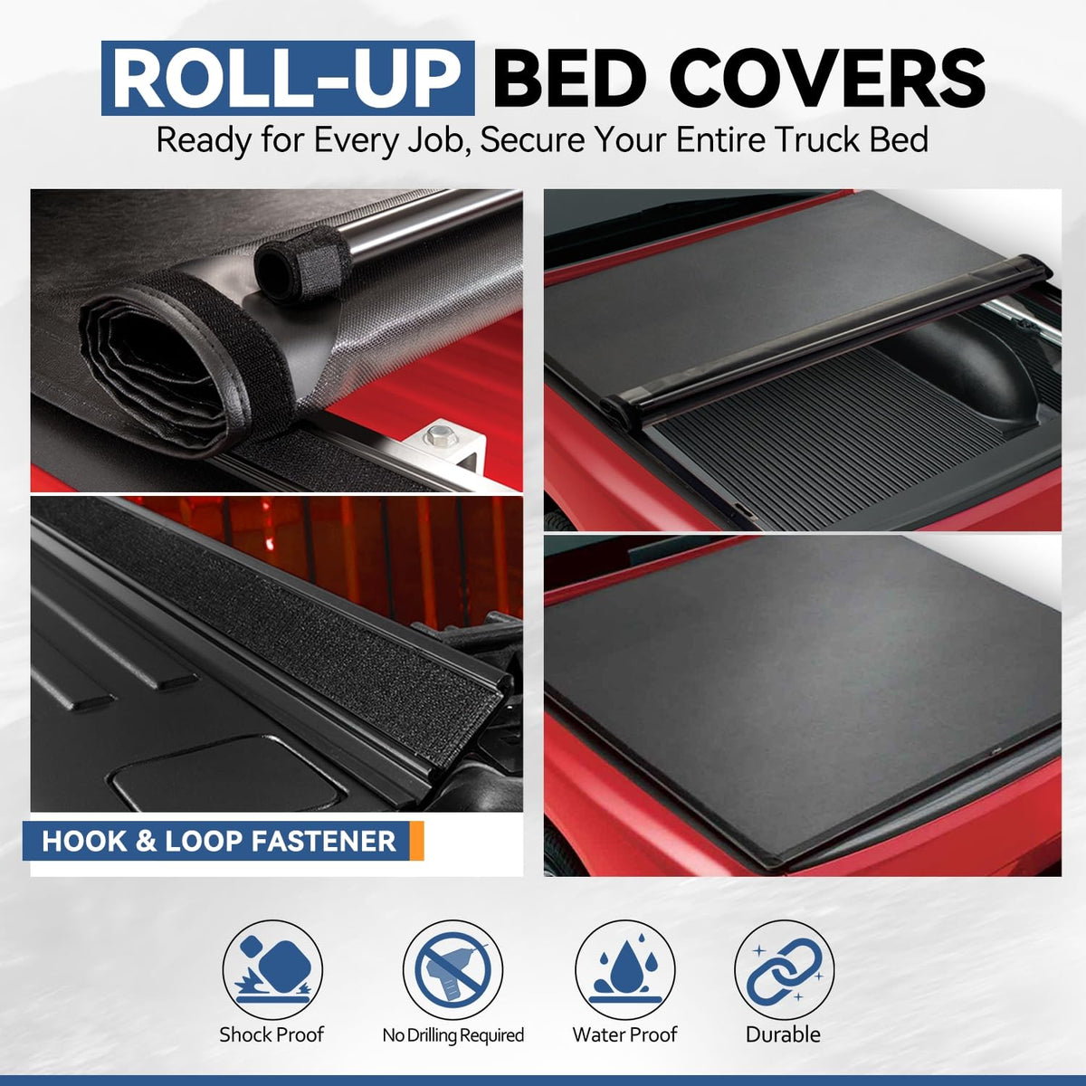 Auto Dynasty Soft Roll-Up Truck Bed Tonneau Cover Compatible With 2014-2019 Chevy Silverado Gmc Sierra 1500 1500Ld 2500Hd 3500Hd