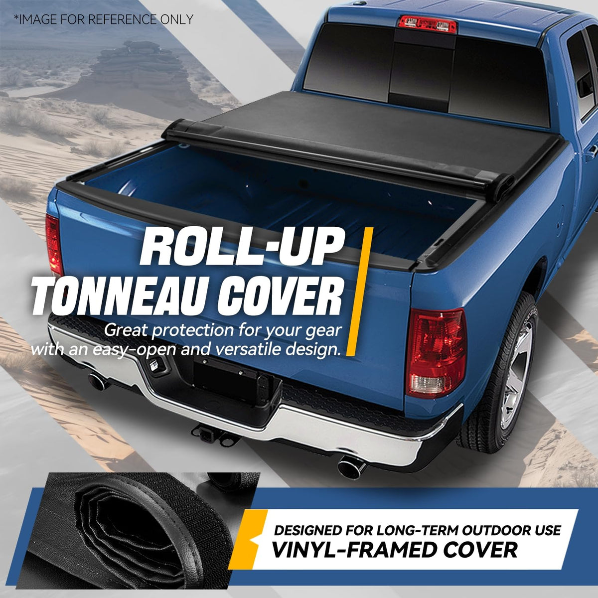 Roll-up tonneau covers are a versatile, affordable way to protect your payload. Fast and easy, roll-up tonneau covers provide all the protective benefits of a tonneau at a wallet-friendly price. Designed for ease, roll-up tonneau covers offer tool-free installation. Better yet, when you have a large load to lug around, the weather-resistant vinyl cover rolls all the way up and secures at the front of your bed - so there's next-to-nothing your truck can't handle. Includes: Pair of Side Mounting Rails 1 x Vinyl Tonneau Cover Hardware as shown This item is compatible with: Compatible with Toyota Tacoma 2016-2024 Fits with 6Ft Bed