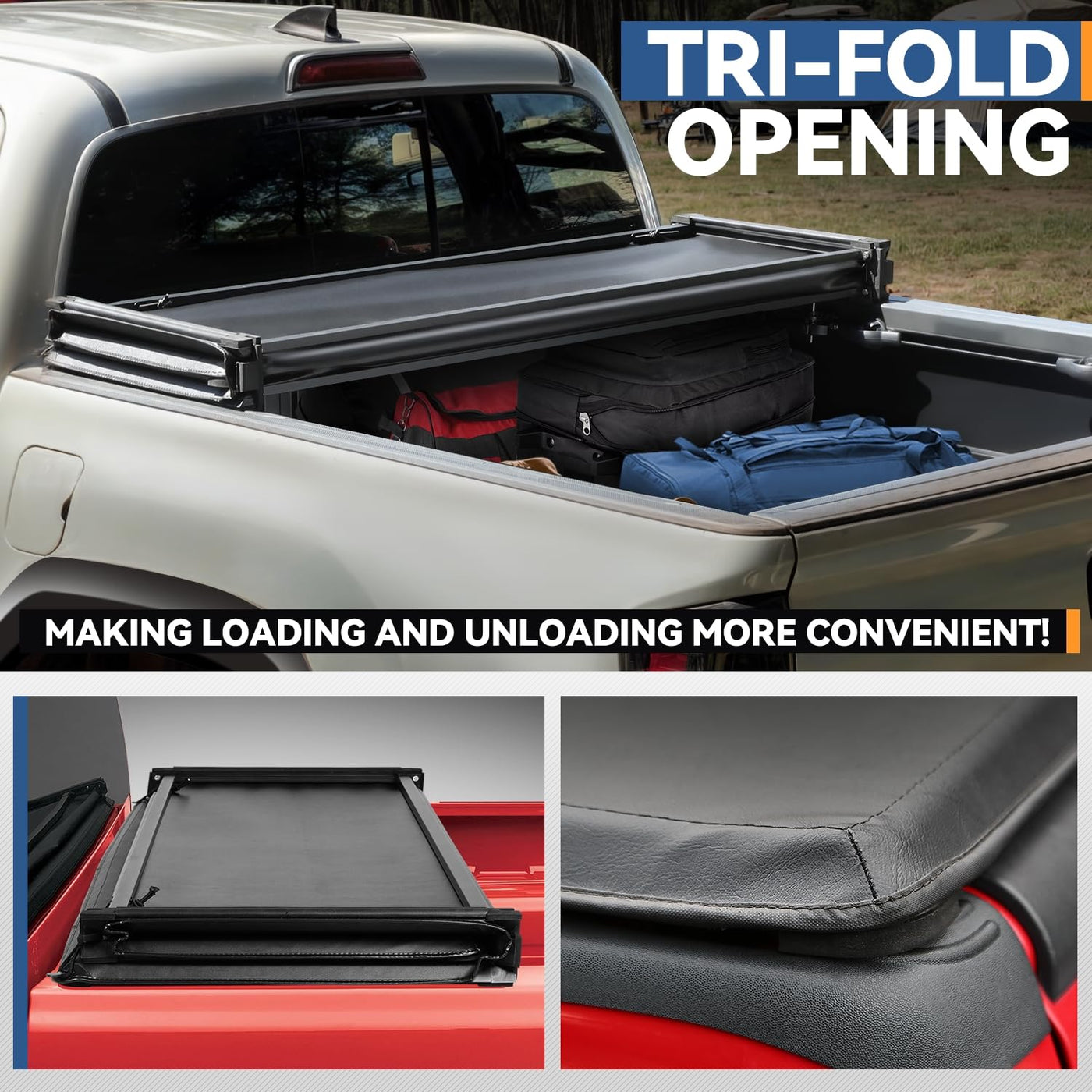 Auto Dynasty Soft Tri-Fold Truck Bed Tonneau Cover Compatible With 2014-2019 Chevy Silverado Gmc Sierra 1500 1500Ld 2500Hd 3500H