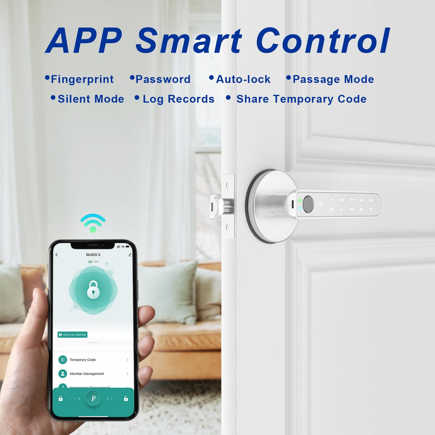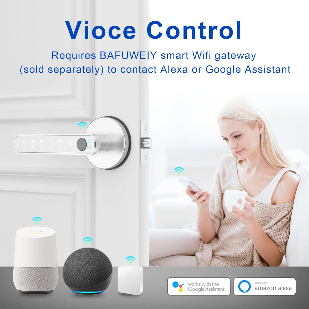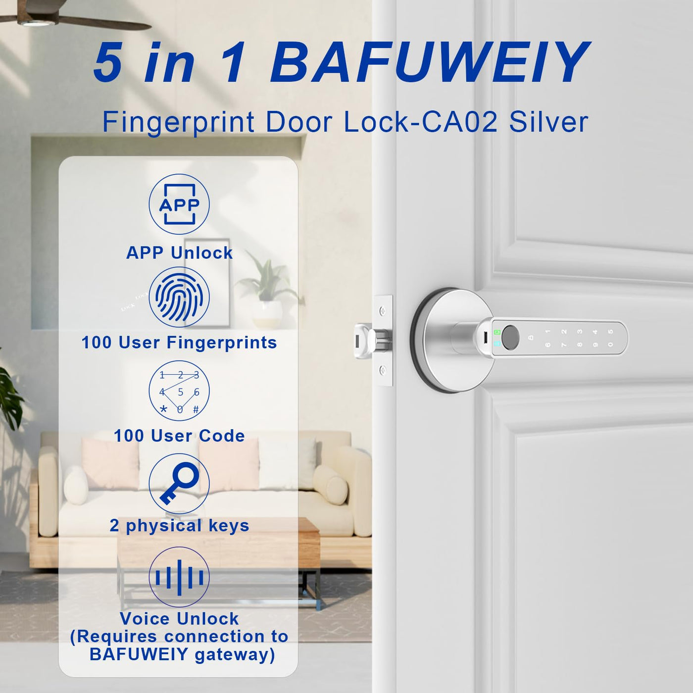 Bafuweiy Fingerprint Door Lock, Fingerprint Door Knob Biometric Door Lock Smart Door Knob With App Control, Keyless Entry Door Lock With Handle For Home Office Apartment Bedroom Silver