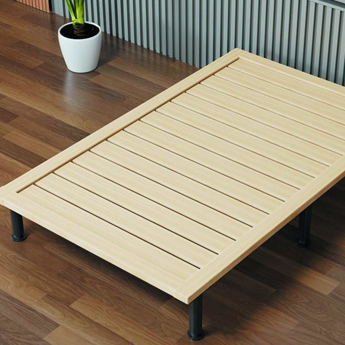 Q: What material are the bed support legs made of?A: The bed frame support legs are made of heavy-duty plastic with a rust-resistant black powder coating, ensuring durability and an industrial feel.