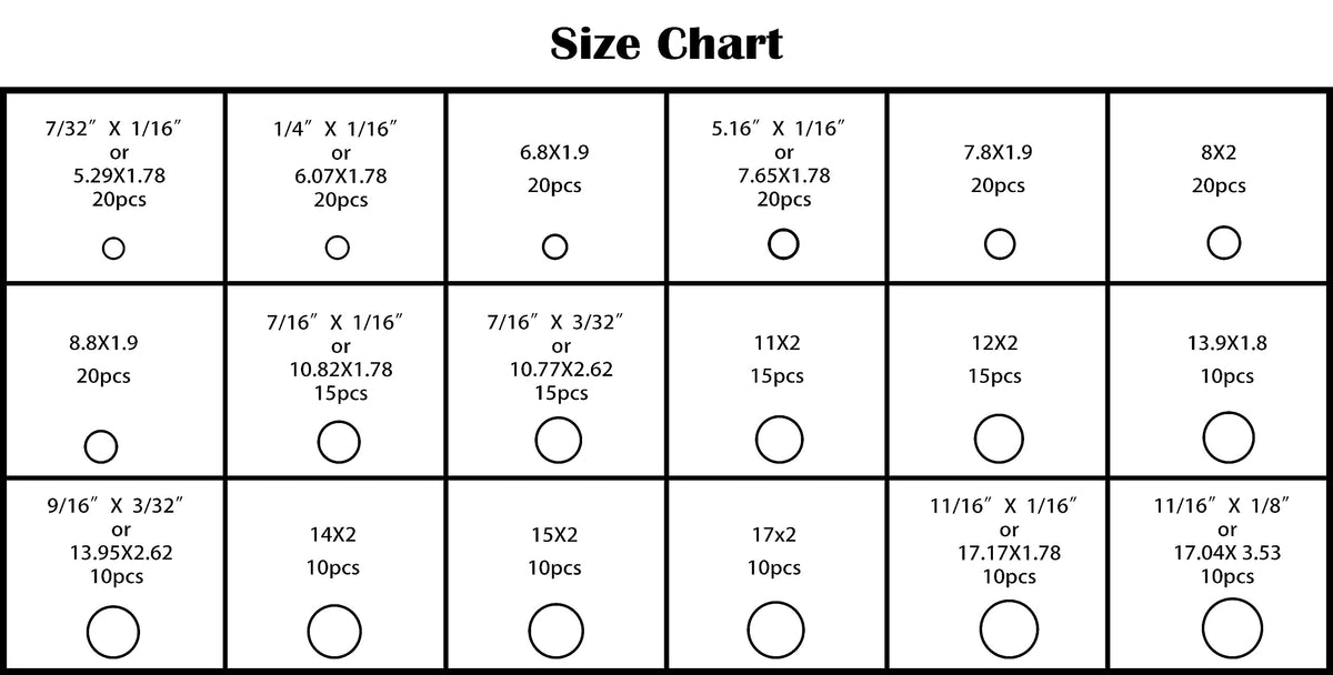 Q: What sizes of O-rings are included in the Beduan 270pcs Compressor O Rings Kit?A: The Beduan 270pcs Compressor O Rings Kit includes O-rings in 18 different sizes, making it versatile for various applications in car air conditioning and other uses.