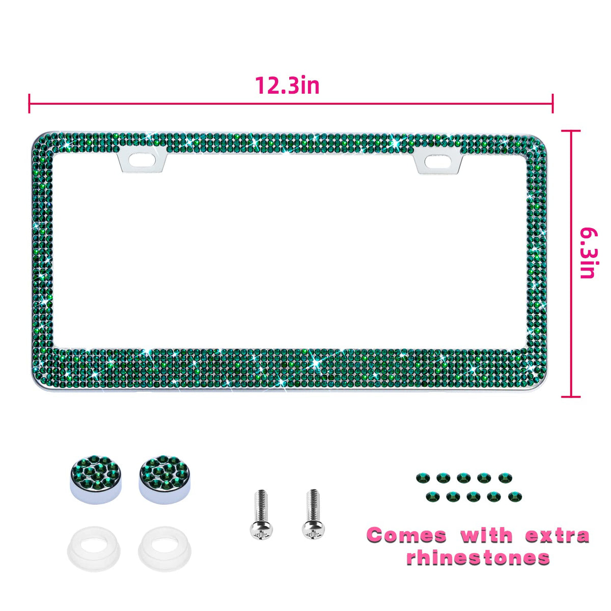 Bling License Plate Frame For Women, 1Pcs Sparkly Stainless Steel License Plate Frames| Over 1000 Pcs 14 Facets Bedazzled Clear