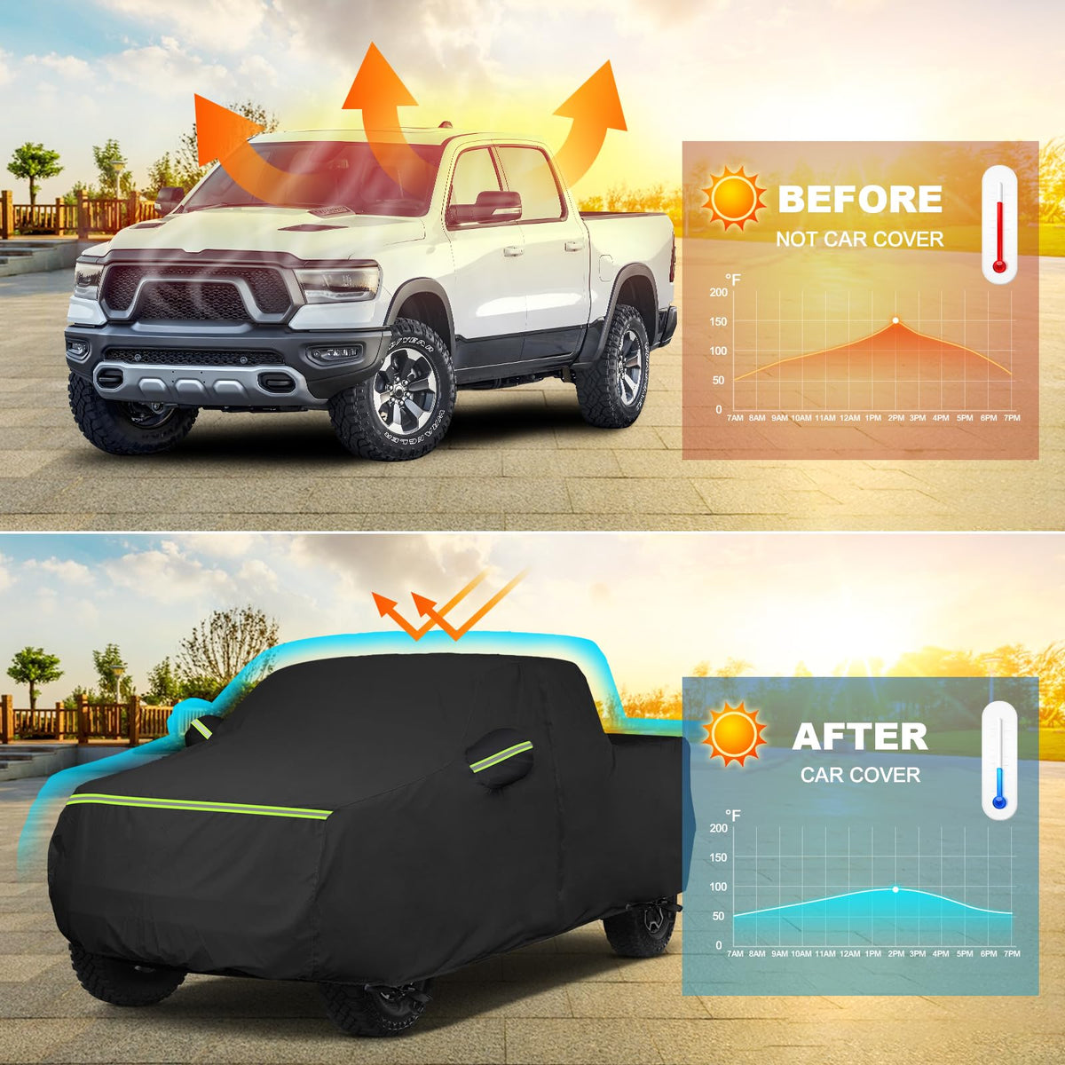 BORDAN Premium Truck Cover Waterproof for Dodge Ram 1500 Crew Cab 6.4 ft Bed (2009-2024), Heavy Duty Full Pickup Car Cover Outdo