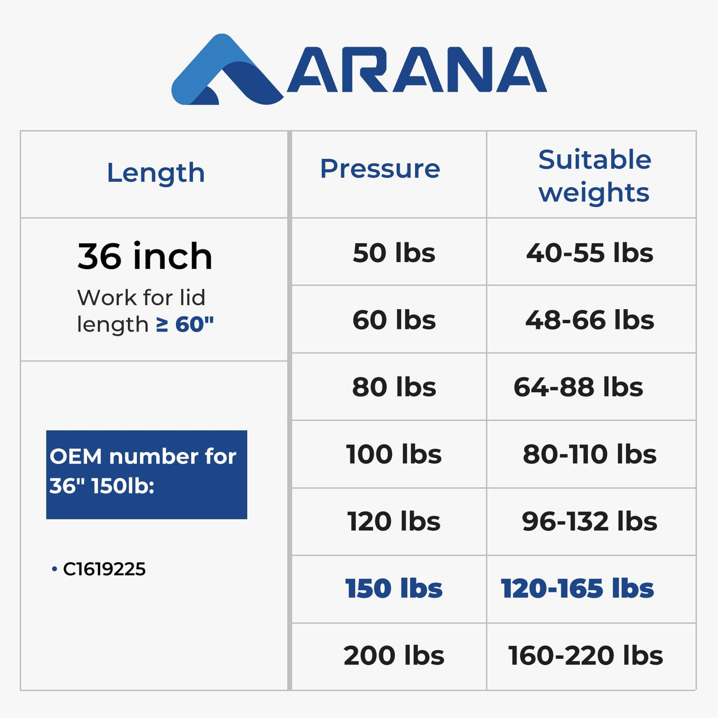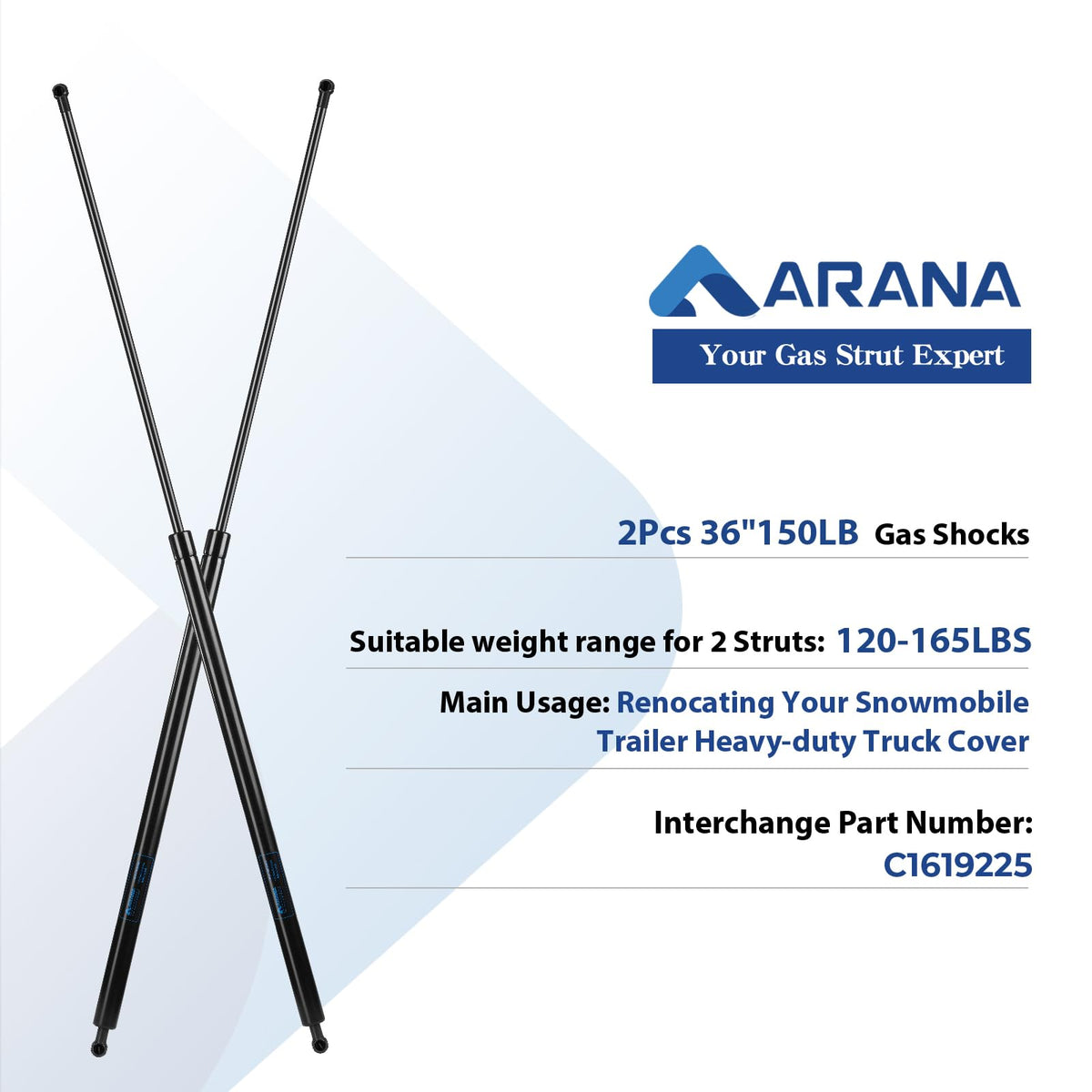 C16-19225 36 Inch Gas Struts 150Lb Shock Springs With 13Mm Ball Sockets, 36 '' Lift Support For Heavy Duty Lid Truck Tonneau Bed