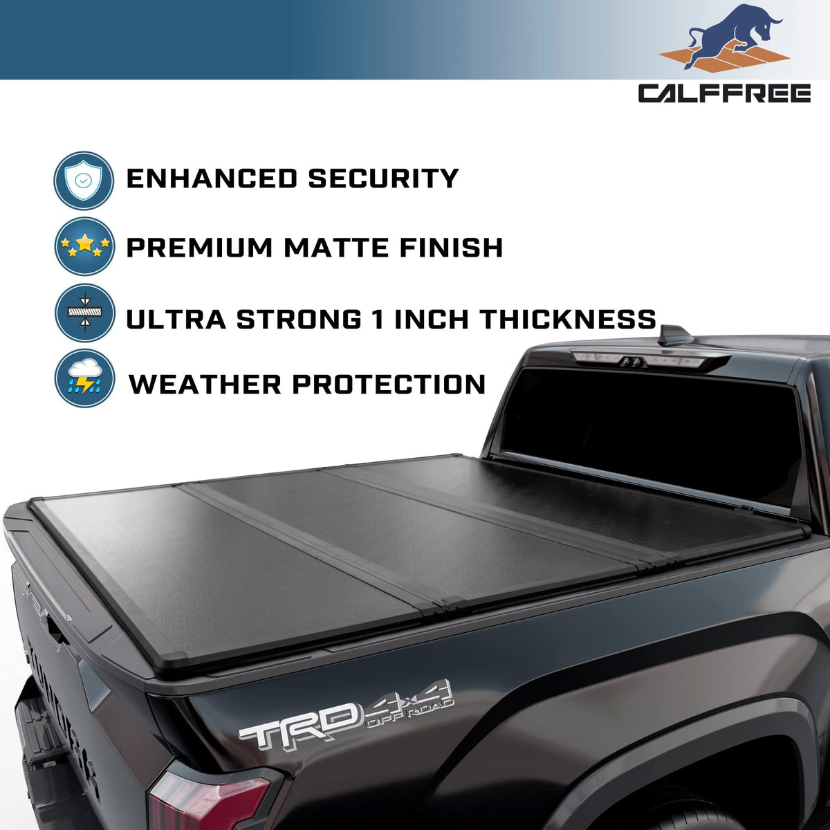 The Calffree hard fold tonneau cover is the perfect solution for protecting your cargo from the elements and improving the fuel efficiency of your truck. Made of durable, weather-resistant materials, this tonneau cover is designed to withstand rain, snow, and other harsh weather conditions. Installation is quick and easy, with a simple fold-up design that allows for easy access to your cargo when needed. The low profile design of the Calffree tonneau cover enhances the look of your truck, while the hard fold design provides added security for your items. In addition to protecting your cargo and improving fuel efficiency, the Calffree tonneau cover also helps to reduce wind noise and drag, making for a more pleasant driving experience. Whether you're hauling equipment, tools, or other valuable items, the Calffree tonneau cover is an essential accessory for any truck owner.