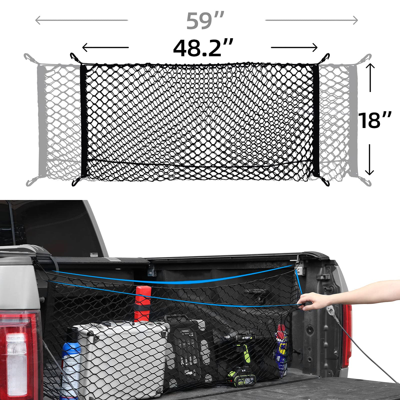 Cargo Net Organizer With Elastic Mesh & Hooks - Grocery Holder For Truck Beds