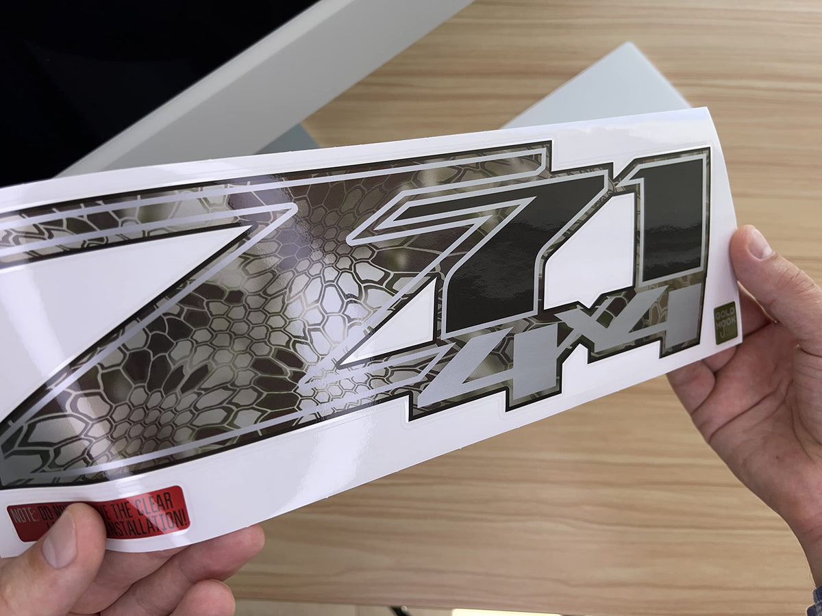 Chevy Silverado Z71 4X4 Decals Stickers (Dimensions 12.5'' X 4'') - F (2007-2013) Bed Side 1500 2500 Hd (Set Of 2) (Kryptek Glos