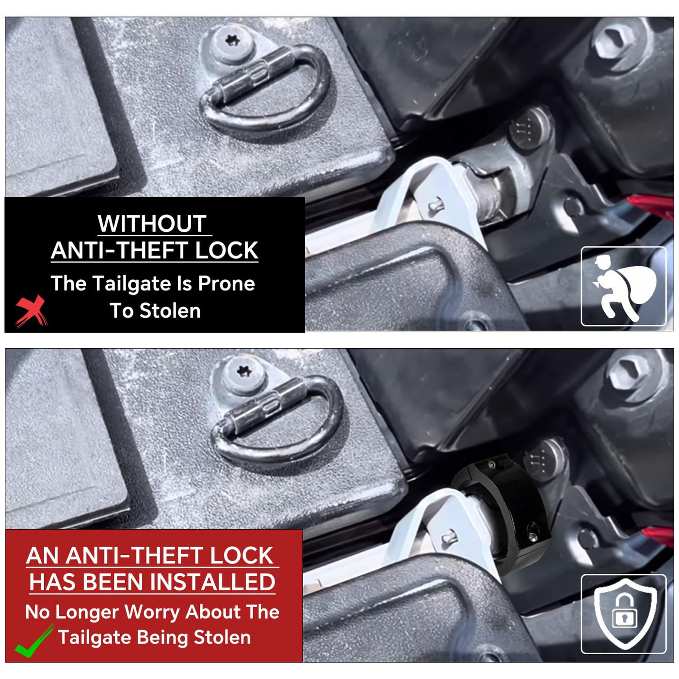 ?Vehicle Compatibility?Compatible with 2016 2017 2018 2019 2020 2021 2022 2023 Toyota Tacoma | ?High Quality?Crafted with precision CNC machining from premium aluminum and finished with a durable anodized surface treatment, the Tailgate Anti-Theft Lock delivers exceptional longevity and robust performance. Its high-strength construction ensures reliable theft deterrence, while the corrosion-resistant, wear-resistant, and rust-resistant properties enable it to withstand harsh weather conditions and long time use. Engineered for maximum durability, this lock maintains structural integrity over years of service, offering unwavering reliability and protection for your vehicle's tailgate. | ?Anti-Theft?The Tailgate Anti-Theft Lock is designed to significantly enhance theft prevention for truck tailgates, which are often vulnerable targets due to their exposed and unsecured nature. Without a dedicated anti-theft lock, tailgates can be easily open or removed by thieves, leading to costly replacements | ?Easy to Install?The installation can be completed within a few minutes simply by using the included screws. The installation steps are provided in the product pictures | ?Warranty?ustintec aims to provide customers with excellent products and constantly improve its services. If product have any problem, please contact us in time and we will help you solve problem. also we provide 180 Days Warranty for Good customer experience.