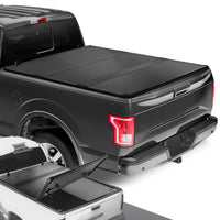 FITMENT - DNA MOTORING Hard Tri-Fold Tonneau Cover Compatible with 15-20 Ford F-150 with 8Ft Bed; Fits Fleetside / Styleside Models Only | PLUG & PLAY - Easy to install with included clamps. Adjustable tension for the perfect fit. Less than 70 lbs weight to help to save gas but strong and durable. Note: vehicles with a bedliner installed may require modifications to install this product. | INCREASE SPEED & SAVE GAS - Increases trucks aerodynamics at speed. Gas saving benefit from a covered bed. Locking strap to secure cover while folded up and driving. Rubberized edges to seal. | DURABLE MATERIAL - Black powder coated aluminum plating and high quality fiberglass reinforced plastic, with double layer PVC and UV protection. Powerful frames and clamps built to support unshakeable stability, Supports up to 358lbs. | GREAT EXPERIENCE - New upgrade symmetrical shaft design tonneau cover, 108% secure dust-proof and snow-proof trunk. Extra coating to help prevent scratches & dents for superior protection in some extreme environments.