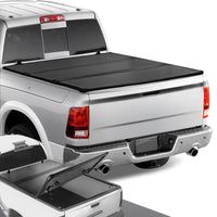 FITMENT - DNA MOTORING Hard Tri-Fold Tonneau Cover Compatible with 09-18 Ram 1500; Compatible with 2019-2022 Ram 1500 Classic, Fit Model with 5.7Ft Fleetside Short Beds | PLUG & PLAY - Easy to install with included clamps. Adjustable tension for the perfect fit. Less than 70 lbs weight to help to save gas but strong and durable. Note: vehicles with a bedliner installed may require modifications to install this product. | INCREASE SPEED & SAVE GAS - Increases trucks aerodynamics at speed. Gas saving benefit from a covered bed. Locking strap to secure cover while folded up and driving. Rubberized edges to seal. | DURABLE MATERIAL - Black powder coated aluminum plating and high quality fiberglass reinforced plastic, with double layer PVC and UV protection. Powerful frames and clamps built to support unshakeable stability, Supports up to 361lbs. | GREAT EXPERIENCE - New upgrade symmetrical shaft design tonneau cover, 111% secure dust-proof and snow-proof trunk. Extra coating to help prevent scratches & dents for superior protection in some extreme environments.