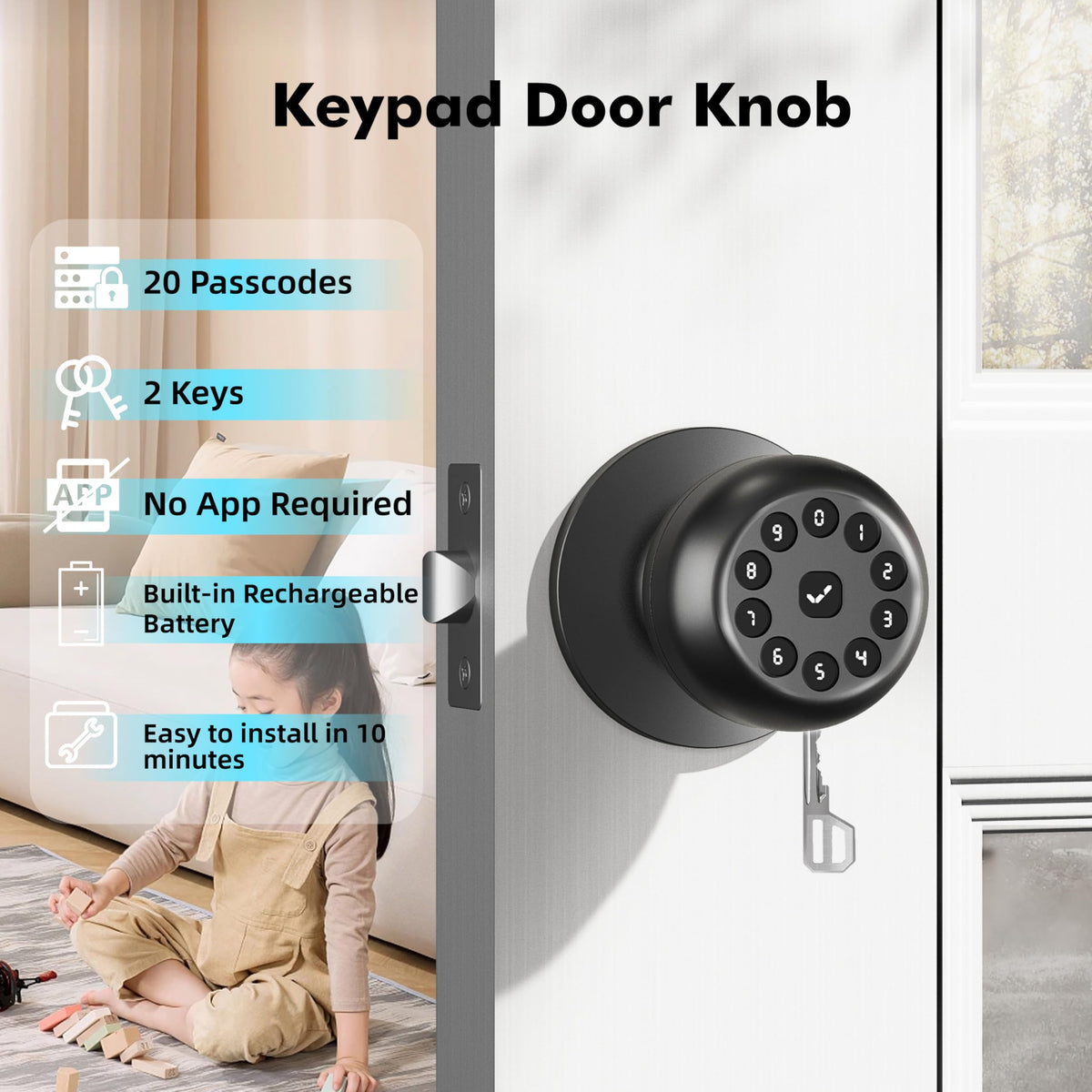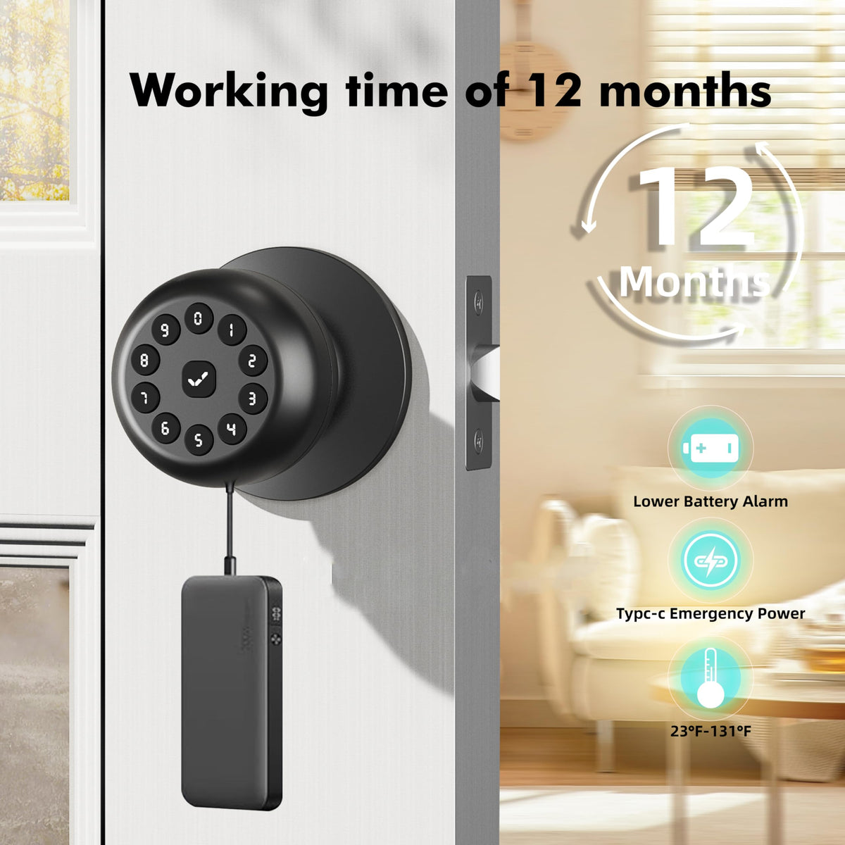 Keypad Smart Door Knob:Upgrade your home security with this rechargeable, reusable, and eco-friendly Smart Door Lock. Featuring a digital keypad for keyless entry and a manual knob for convenience, it combines modern design with reliable protection. Great for busy households and offices.