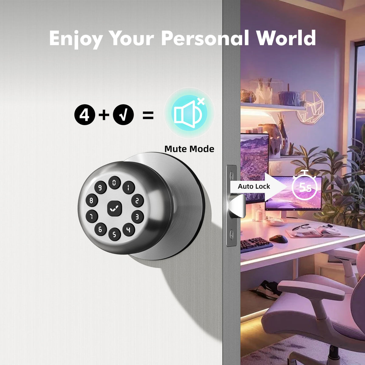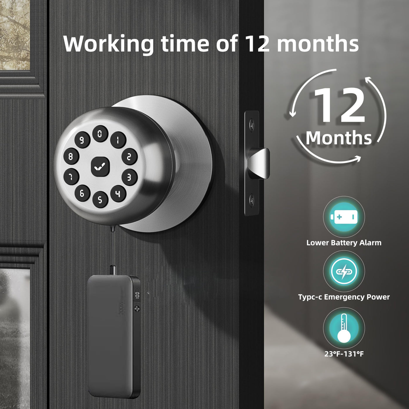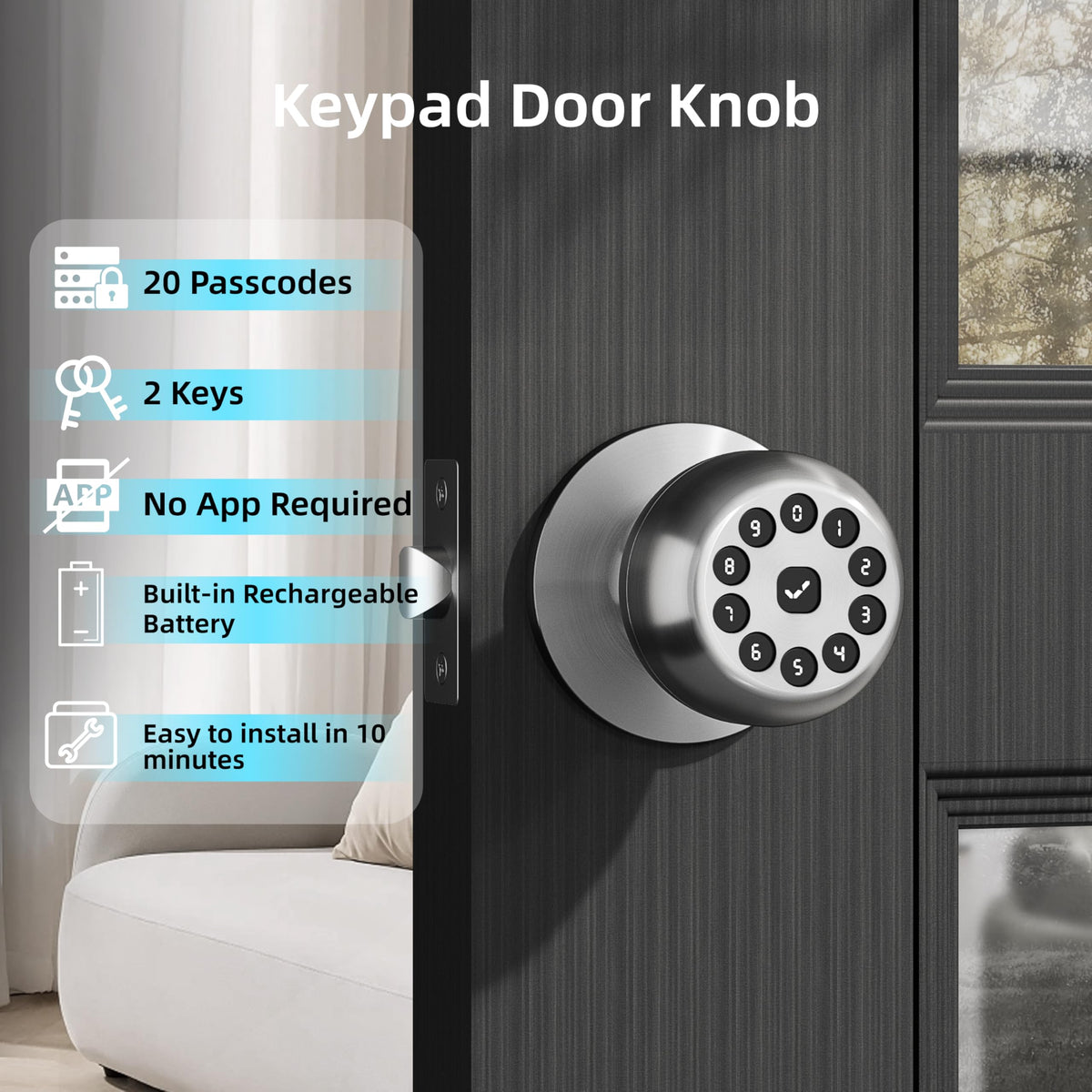 Keypad Smart Door Knob:Upgrade your home security with this rechargeable, reusable, and eco-friendly Smart Door Lock. Featuring a digital keypad for keyless entry and a manual knob for convenience, it combines modern design with reliable protection. Great for busy households and offices.