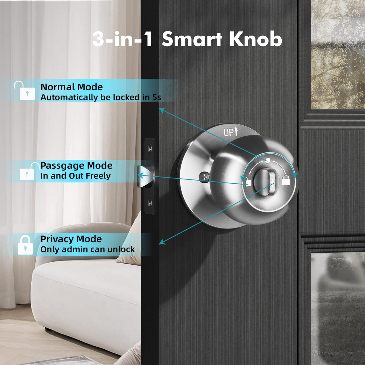 Q: How does the EUERTE Smart Door Knob with Lock work for keyless entry?A: The EUERTE Smart Door Knob features a digital keypad that allows for keyless entry. You can set up to 3 master codes and 17 access codes, each ranging from 4 to 8 digits in length. This ensures convenient access for family members or trusted guests without the need for physical keys.