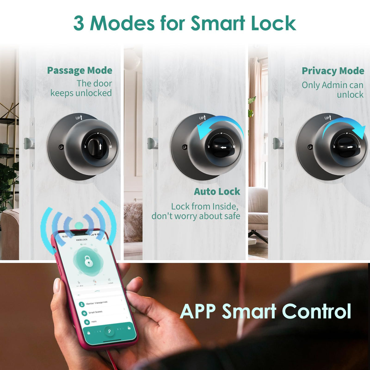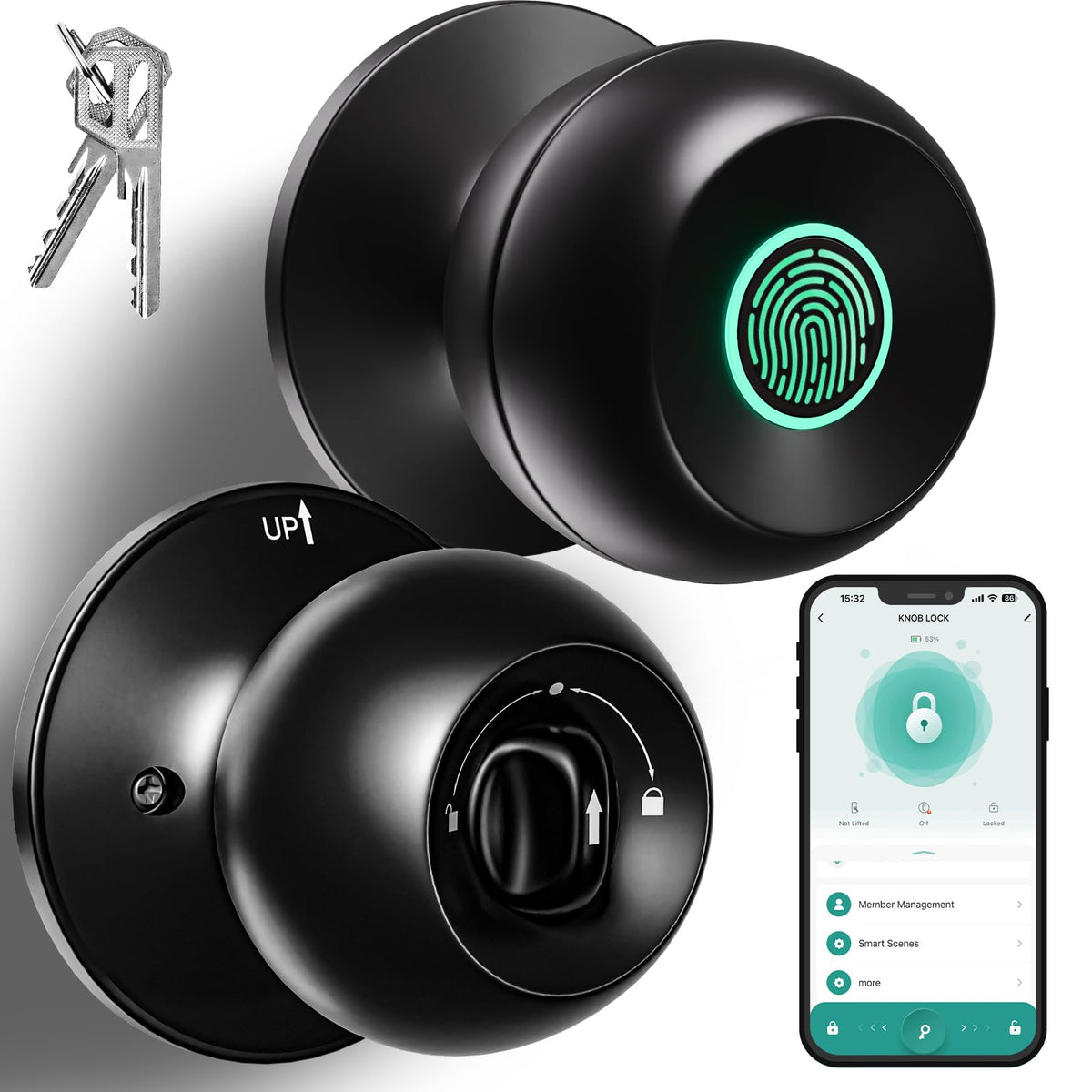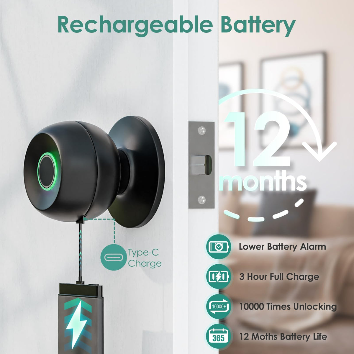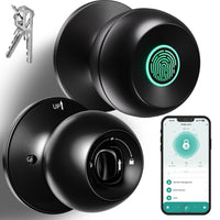 Fingerprint Door Lock,Smart Door Knob,Biometric Door Lock,Thumbprint Door Knob With App Control, Key, Great For Bedroom, Front Door, Apartment, Office, Garage, Cloakroom Black