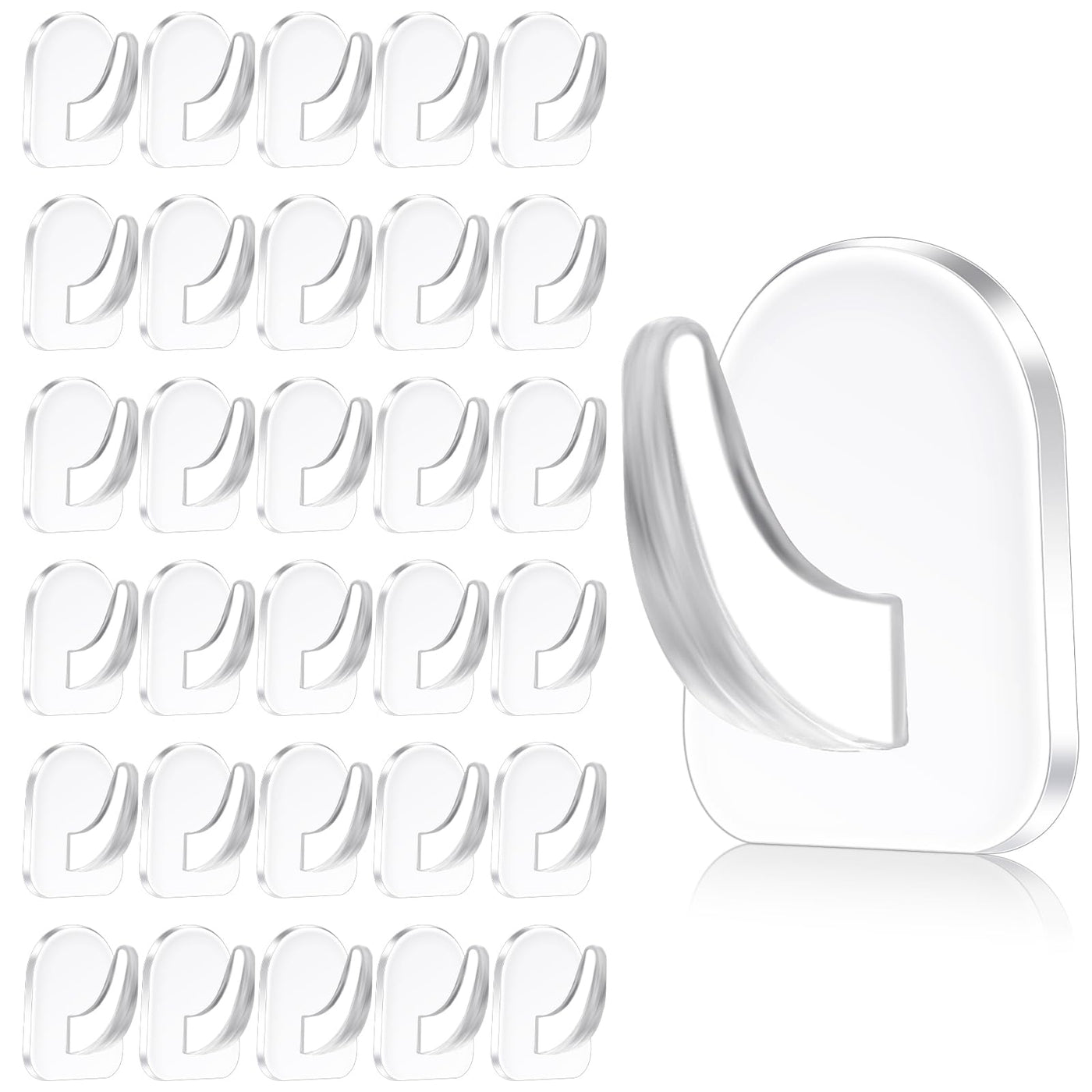 Gjinxi 30 Pcs Clear Adhesive Wall Hooks For Hanging, Heavy Duty Removable Hooks, Plastic Small Acrylic Sticky Hangers, Hanging Hooks With No Damage Sticker For Home Kitchen Bathroom Bedroom Office