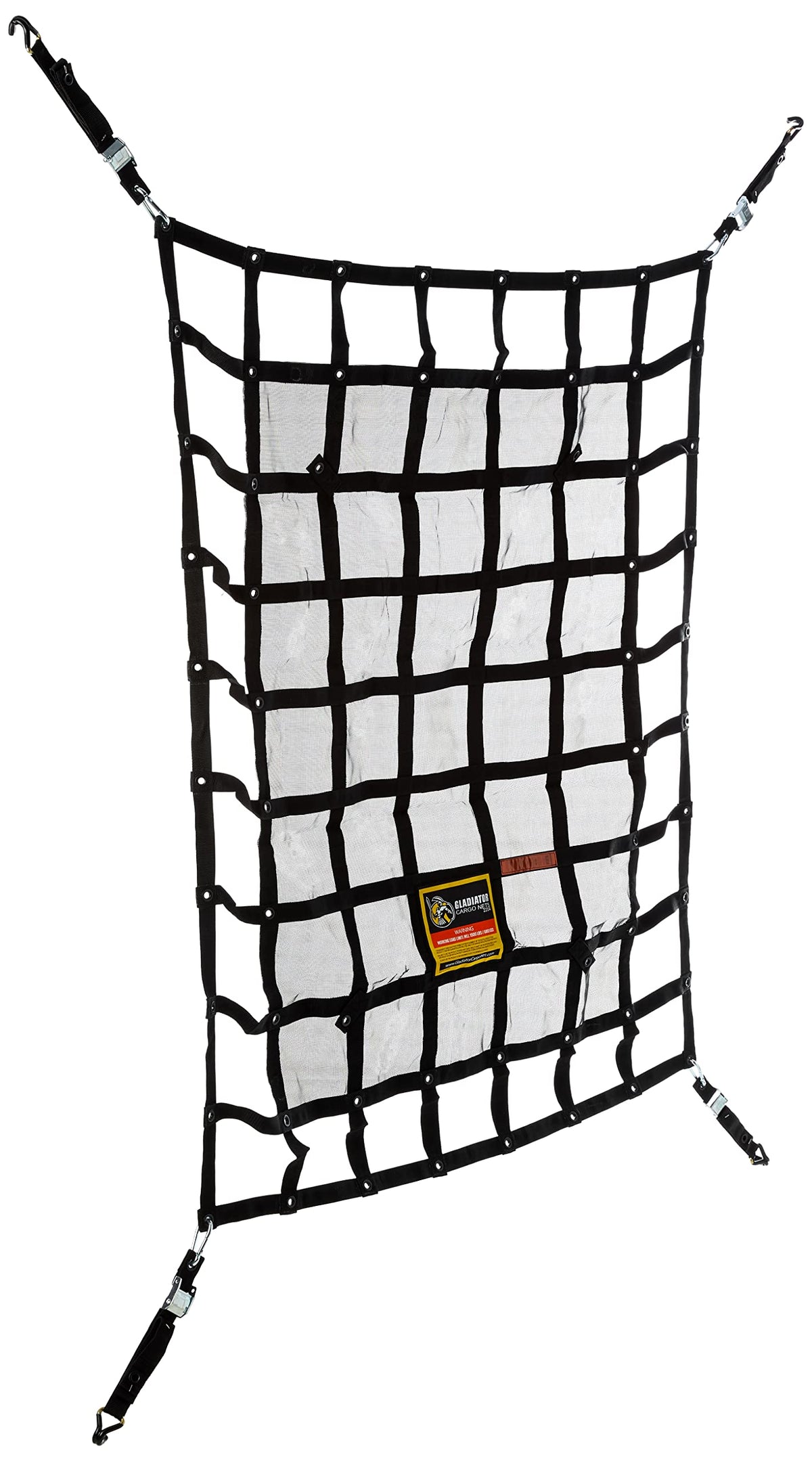 Q: What is the weight capacity of the Gladiator Cargo Net?A: The Gladiator Cargo Net has a working load limit (WLL) of 1,500 lbs, making it suitable for securing heavy loads during transport.